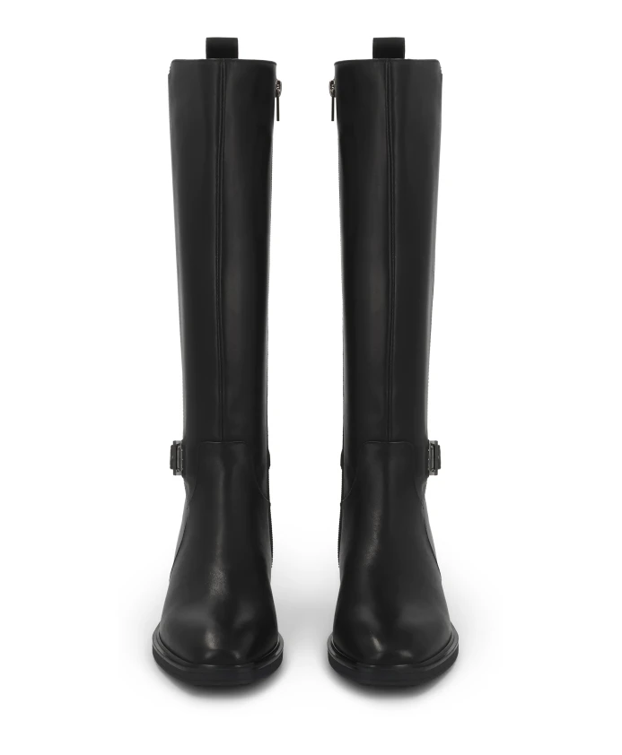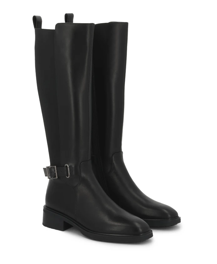 Сапоги из натуральной кожи - элегантный выбор с изысканным и функциональным дизайном. Гладкая кожаная поверхность в сочетании с прямой линией голенища создает классическую, вневременную форму, подходящую как для повседневной носки, так и для более торжественных случаев. Дизайн включает широкую эластичную вставку сзади, позволяющую сапогу идеально облегать голенище, обеспечивая комфорт и свободу движений. Внутренняя молния облегчает надевание и снимание сапог, оставаясь практически незаметной, не нарушая при этом строгих линий дизайна. Ненавязчивые украшения в виде двух горизонтальных ремешков с пряжками на уровне щиколотки добавляют нотку рыцарского шика, смягчая минималистичный вид и придавая сапогам неповторимый характер. Подкладка из мягкой полуанилиновой овчины гарантирует высокий комфорт, а тканевая меховая подкладка обеспечивает ощущение тепла в холодные дни.