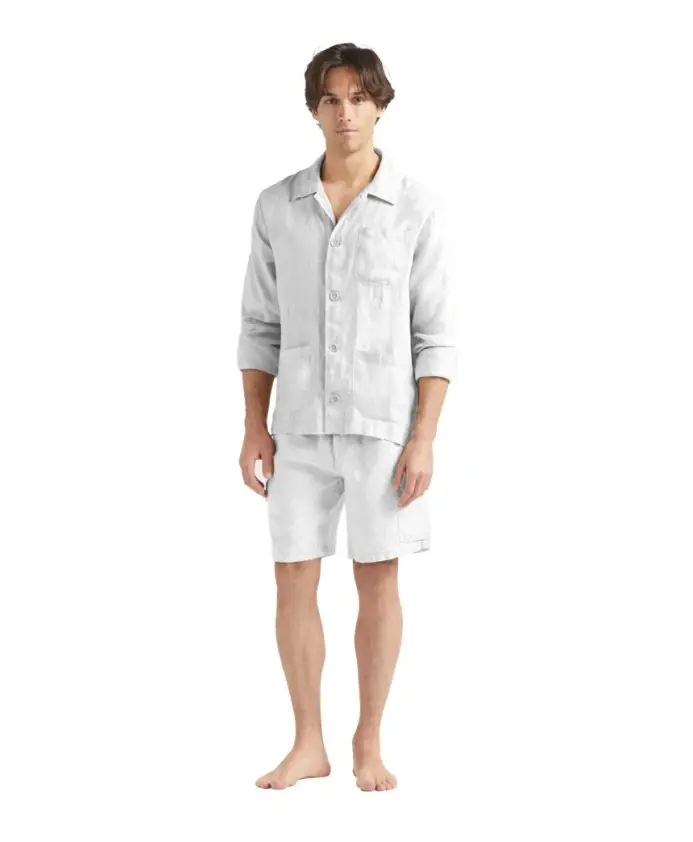 Рубашка-куртка Corentin от Vilebrequin - это изысканная льняная рубашка, которую также можно носить как легкую куртку. Она отличается лаконичными карманами в стиле рабочей одежды и едва заметной вышивкой в тон ткани в виде черепахового узора. Ключевые особенности: Белый | Лен | Легкий | Дышащий | Три накладных передних кармана | Внутренний нагрудный карман | Застежка на пуговицы | Боковые разрезы | Вышивка в тон ткани в виде черепахового узора на левом бедре | Детали накладных карманов | Размеры и посадка: Слегка свободный крой | Разработана как легкая рубашка-куртка, которая также подходит в качестве летней куртки | Состав и уход: 100% лен | Машинная стирка при 30°C в деликатном режиме. Сушить на воздухе в тени. Не отбеливать. Не сушить в сушильной машине. Гладить при низкой температуре. Не подвергать химчистке. Стирать с вещами схожих цветов. Гладить с изнанки.