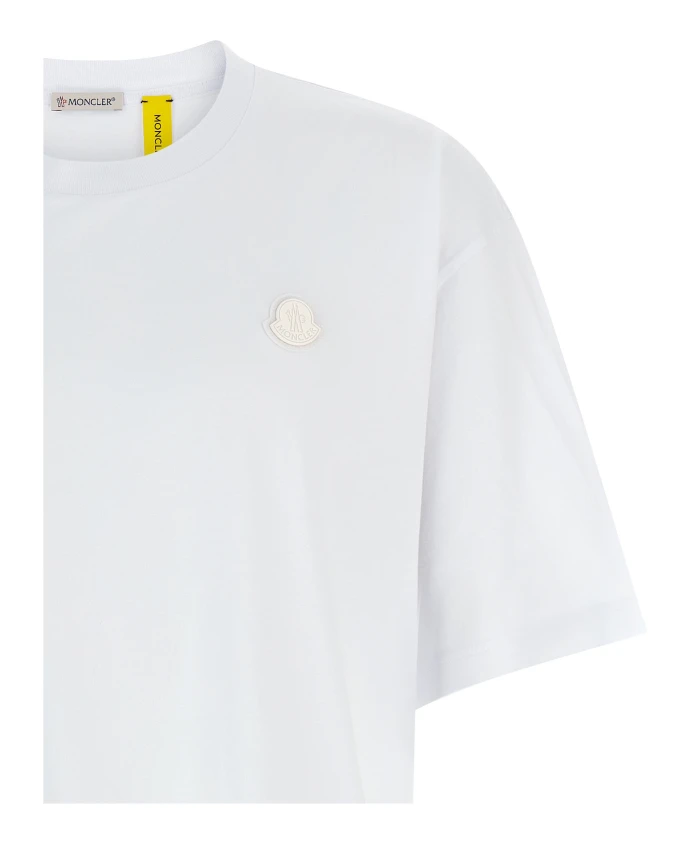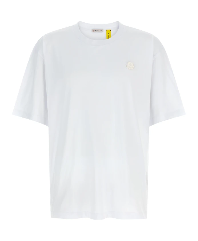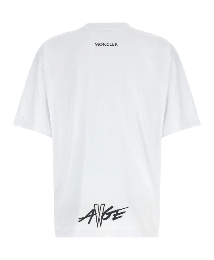 Футболка Moncler с круглым вырезом из коллаборации Moncler x A$AP Rocky сочетает в себе стиль стритвеар и фирменные детали с логотипом. Она украшена нашивкой с логотипом спереди и ярким принтом сзади, все это на мягкой хлопковой трикотажной ткани. Ключевые особенности: Белый | Хлопок | Мягкий хлопковый трикотаж | Средняя плотность | Ребристые манжеты и нижний край | Круглый вырез | Короткие рукава | Нашивка с логотипом спереди | Принт на спине | Размеры и посадка: Свободный крой | Модель носит размер M; рост 188 см | Состав и уход: Основная ткань: 100% хлопок | Ребристый край: 100% хлопок | Машинная стирка при температуре не выше 30°C - деликатный режим. Не отбеливать. Не сушить в сушильной машине. Гладить при температуре не выше 110°C без пара. Не подвергать химчистке. Профессиональная влажная чистка - деликатный режим. Сушить в горизонтальном положении в тени.