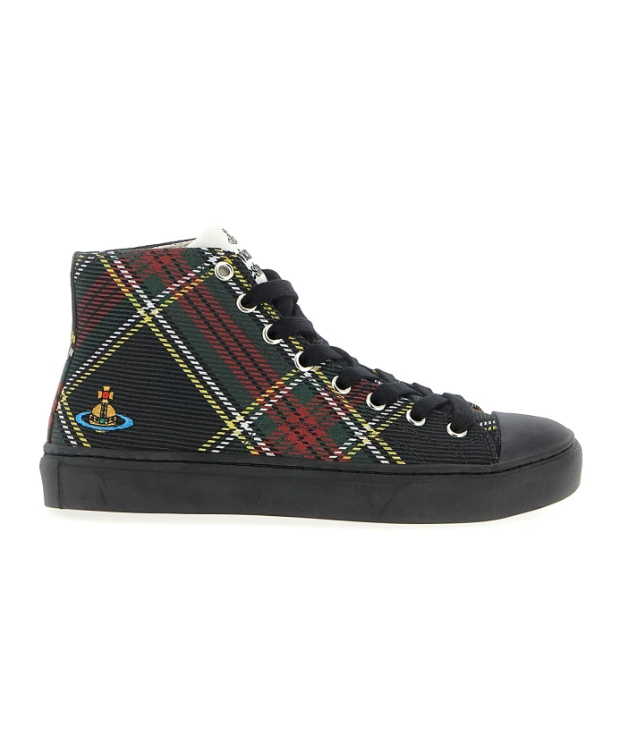 Кроссовки Vivienne Westwood High Top Plimsoll: классические высокие кеды из парусины, обновленные в клетчатом стиле «челси» с фирменной вышивкой в виде шара, что делает их стильными кроссовками на каждый день. Ключевые особенности: Черный | Парусина | Шнуровка | Мягкая хлопковая подкладка | Резиновая подошва | Резиновый носок | Тканая этикетка на язычке | Высокий силуэт | Парусина в клетку «челси» | Вышивка логотипа в виде шара сбоку | Логотип на язычке | Тональная строчка | Размер и посадка: Соответствует размеру | Состав материала и уход: 100% хлопок | 100% резина | 100% хлопок (подкладка) | Бережно обращайтесь с тканями и деликатными материалами. Избегайте прямого воздействия тепла или солнечных лучей, чтобы предотвратить выцветание. Если кроссовки намокли, тщательно высушите их тканью, набейте бумагой и дайте высохнуть на воздухе вдали от источников тепла.