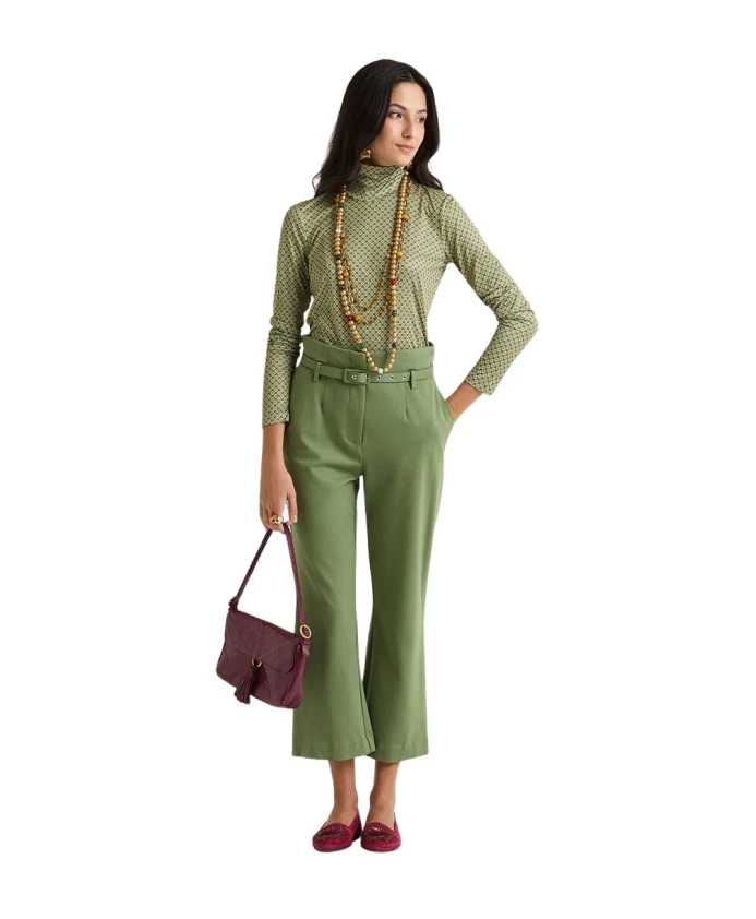 Брюки Malìparmi Milano Stitching сочетают в себе высокую талию и силуэт «труба» с трикотажным полотном Milano, создавая элегантный и удобный вариант, подходящий как для стиля smart-casual, так и для офисного гардероба. Ключевые особенности: Зеленый | Папоротниково-зеленый | Вискоза | Эластичная ткань | Эластичный пояс сзади | Полностью на подкладке | Пояс на талии | Высокая талия | Низкий пояс из ткани в тон | Длина до щиколотки | Силуэт «труба»/расклешенный | Размеры и посадка: Длина: 96 см | Высокая талия | Силуэт «труба»/расклешенный | Длина до щиколотки | Состав и уход: 65% вискоза, 30% полиамид, 5% эластан | Подкладка: 100% полиэстер. Ручная стирка. Гладить при максимальной температуре 110°C. Не сушить в сушильной машине. Не отбеливать. Профессиональная химчистка (перхлорэтилен) - щадящий режим; профессиональная химчистка (углеводороды) - щадящий режим.