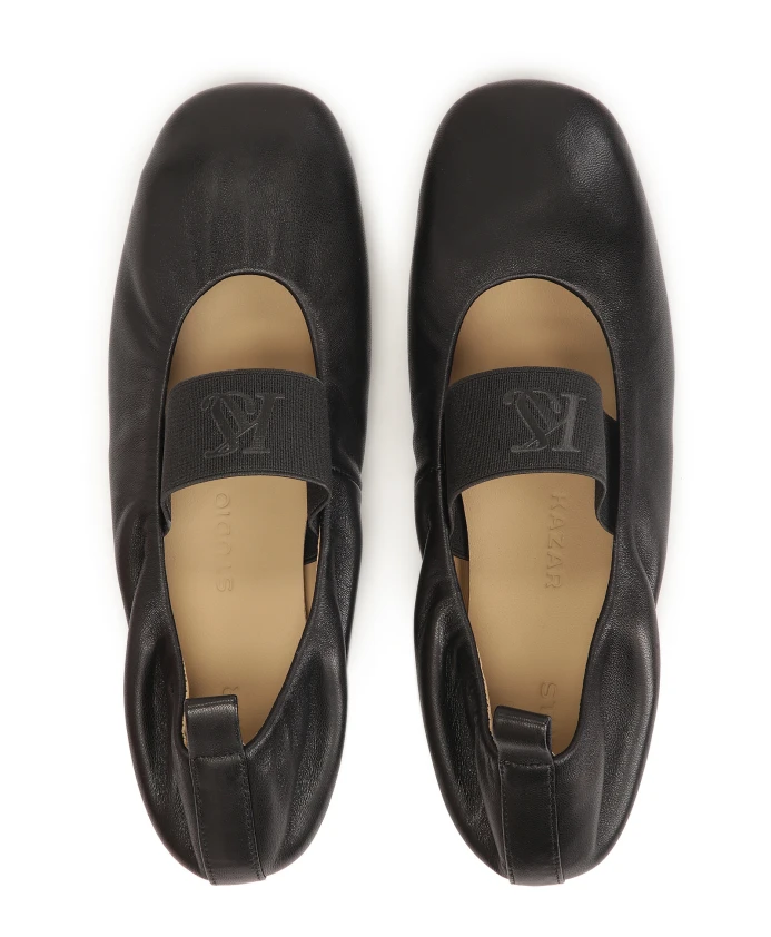 Черные балетки из высококачественной натуральной кожи - элегантный и современный выбор, идеально подходящий как для повседневной носки, так и для более формальных нарядов. Изготовленные из мягкой, прочной кожи, они обеспечивают комфорт и долговечность. Эти балетки имеют широкий эластичный ремешок на подъеме стопы, обеспечивающий устойчивость и добавляющий современный штрих. Ремешок украшен едва заметным логотипом KAZAR STUDIO, подчеркивающим престиж бренда и качество изготовления. Закругленный носок добавляет им классического шарма, а петля на пятке облегчает надевание и добавляет элегантности. Кожаная подошва обеспечивает комфортную ходьбу, а резиновая вставка дополнительно улучшает сцепление и долговечность, делая эти балетки не только стильными, но и функциональными. Подкладка выполнена из тонкой и мягкой полуанилиновой овчины для максимального комфорта.