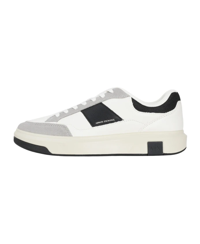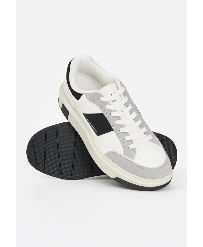 Подчеркните свой повседневный стиль с помощью этих белых кроссовок ARMANI EXCHANGE для мужчин. Верх выполнен из сочетания материалов: белая синтетическая кожа, светло-серые замшевые накладки и черные детали из технической ткани создают современный и динамичный контраст. Черная боковая полоса украшена белым логотипом Armani Exchange, а также ненавязчивыми тиснеными инициалами «A|X» на пятке и подошве. Дизайн лаконичный, но при этом выразительный, идеально подходит для тех, кто ищет повседневную обувь с ярко выраженным стилем. Слегка приподнятая кремовая резиновая подошва обеспечивает комфорт и сцепление, делая эти кроссовки идеальными для повседневной носки. Универсальные и легко сочетающиеся с джинсами, брюками-карго или в стиле стритвеар, они идеально подходят для осенне-зимнего сезона. Низкие белые кроссовки для мужчин, осень-зима XM001720AF17529M0017.