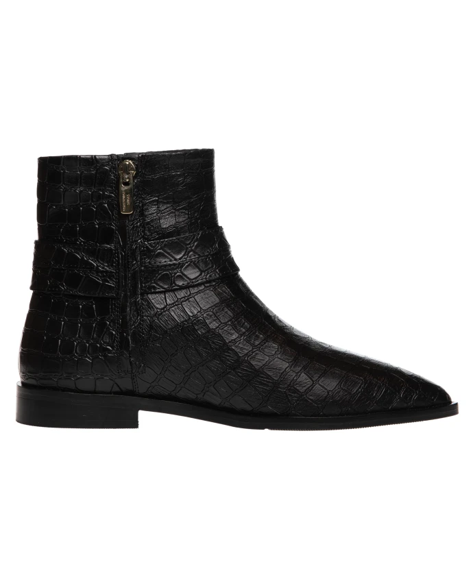 Ботильоны Copenhagen Shoes из кожи с тиснением под крокодила, с двойными ремешками и фурнитурой золотистого цвета. Эти стильные, эффектные ботильоны идеально подходят как для повседневной носки, так и для более нарядных образов, а мягкая стелька обеспечивает комфорт в течение всего дня. Основные характеристики: Черный | Кожа | Мягкая стелька для комфорта в течение всего дня | Внутренняя застежка-молния для удобства надевания и снимания | Подошва из термопластичной резины (TPR) для сцепления и долговечности | Мягкая стелька из пеноматериала CopenhagenShoes (4-6 мм) | Глянцевая черная кожа с тиснением под крокодила | Структурированный силуэт | Деталь с двойными ремешками и фурнитурой золотистого цвета | Состав и уход: Кожа | Подошва из термопластичной резины (TPR) | Стелька: пеноматериал CopenhagenShoes 4-6 мм | Металлическая фурнитура золотистого цвета