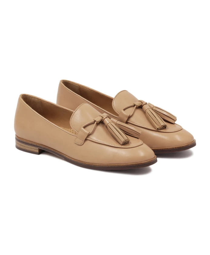 Бежевые слипоны из натуральной кожи отличаются элегантным дизайном и исключительным комфортом. Гладкий текстурированный верх украшен стильным чокером, придающим обуви утонченный характер с оттенком классического стиля. Плоский каблук обеспечивает комфорт и устойчивость при повседневной носке. Внутренняя часть отделана мягкой кожей, гарантируя комфорт даже при длительном ношении. Конструкция без шнурков делает их удобными в надевании и практичным выбором для любого случая. Благодаря нейтральному бежевому цвету обувь дополняет самые разные стили, от элегантных до повседневных. Сочетание простоты, комфорта и классических деталей делает их универсальной моделью, идеально подходящей для повседневной носки. Обувь имеет контурную перфорированную комфортную стельку из полуанилиновой козьей кожи, которая адаптируется к форме стопы и эффективно отводит влагу.