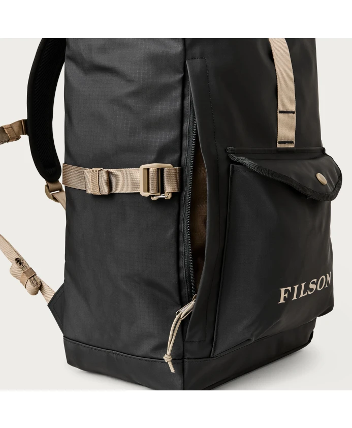 Будьте готовы к любой погоде с рюкзаком Filson All-Weather. Этот прочный рюкзак изготовлен из 100% полиэстера с термопластичным полиуретановым покрытием для максимальной водостойкости. Объемом 30 литров, он предлагает достаточно места для всех ваших повседневных вещей. Основное отделение выполнено из легкой ткани рипстоп 300D, а дно - из матового материала Oxford 600D. Мягкая спинка и анатомические плечевые лямки обеспечивают воздухопроницаемость и комфорт, а регулируемый нагрудный ремень надежно фиксирует содержимое. Благодаря конструкции с закручивающимся верхом, этот рюкзак разработан для защиты от воды, обеспечивая при этом легкий доступ к основному отделению. Другие особенности включают внутренний карман для ноутбука, внешние карманы на молнии и клапанах, а также компрессионные ремни с каждой стороны для стабилизации грузов различного размера.