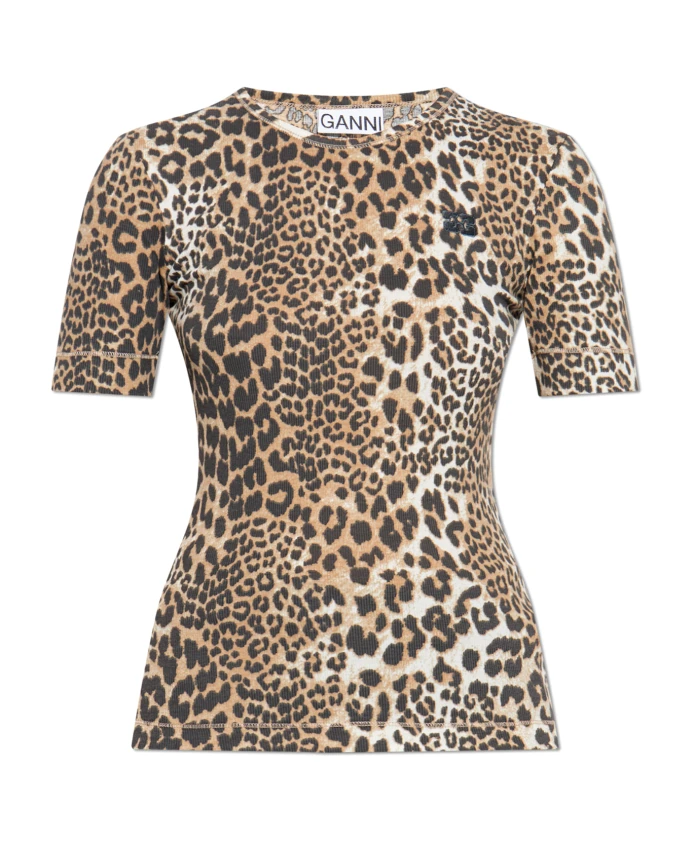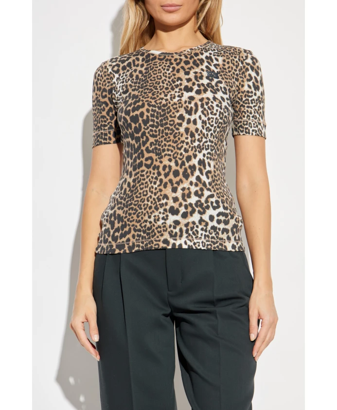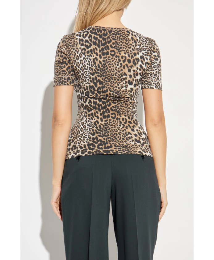 Футболка с леопардовым принтом Ganni, бежевый