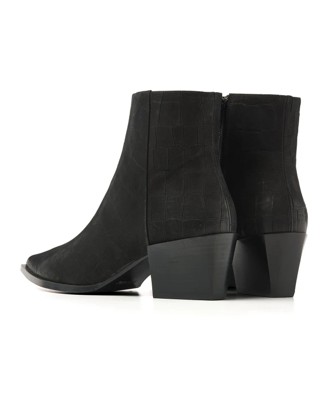 Основные характеристики: заостренный носок, небольшая разница в высоте каблука и подошвы, декоративный боковой шов, функциональная внутренняя застежка-молния, кожаная подкладка, изготовлено из высококачественной кожи, ручная работа, сделано в Португалии. Черные ботильоны Kate Malina. Главный тренд этого сезона? Это ботильоны Kate Malina. Изготовленные из роскошной кожи с неожиданным тиснением под кожу рептилии, ботильоны отличаются игривой разницей в высоте от подошвы, а заостренный носок добавляет дерзости. Это делает Kate Malina идеальным сочетанием смелости и женственности. Готовы преобразить свой образ? Вот как стилизовать ботильоны Kate Malina: сочетайте их с подвернутыми джинсами и жилетом-«тедди» для расслабленного и комфортного образа. Хотите, чтобы ботильоны действительно выделялись? Тогда выберите комбинезон контрастного цвета.