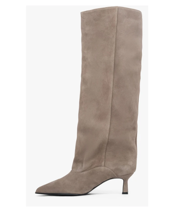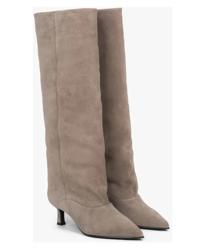 Велюровые высокие сапоги Estro, бежевый