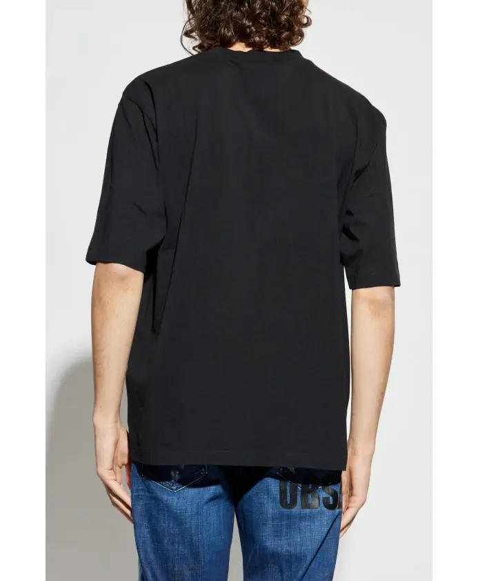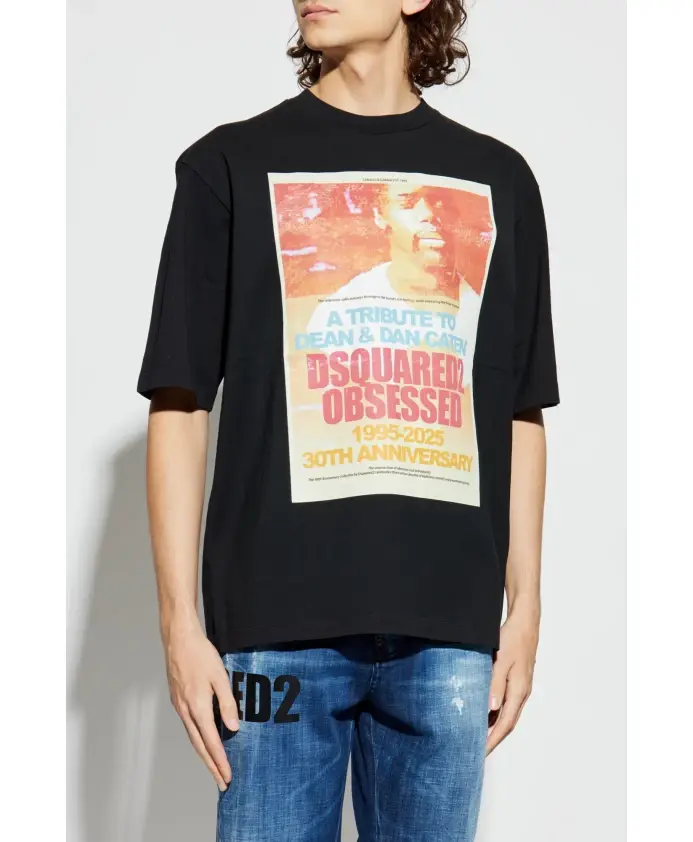 Футболка Dsquared2 с принтом сочетает в себе свободный силуэт из хлопка с круглым вырезом и смелый прямоугольный принт, посвященный 30-летию бренда. Созданная для универсального повседневного комфорта, она предлагает сбалансированное сочетание удобной конструкции и выразительного графического рисунка. Ключевые особенности: Черный | Хлопок | Комфортный | Прочный | Мягкий для кожи | Универсальный стиль | Легко сочетается с другой одеждой | Повседневная носка | Круглый вырез | Короткие рукава | Прямоугольный принт, посвященный 30-летию бренда, с портретными и текстовыми деталями | Размеры и посадка: Рост модели: 193 см | Обхват груди модели: 95 см | Обхват талии модели: 82 см | Обхват бедер модели: 93 см | Модель носит размер: L | Свободный крой | Облегает силуэт, не стесняя движений | Состав и уход: 100% хлопок | Машинная стирка.