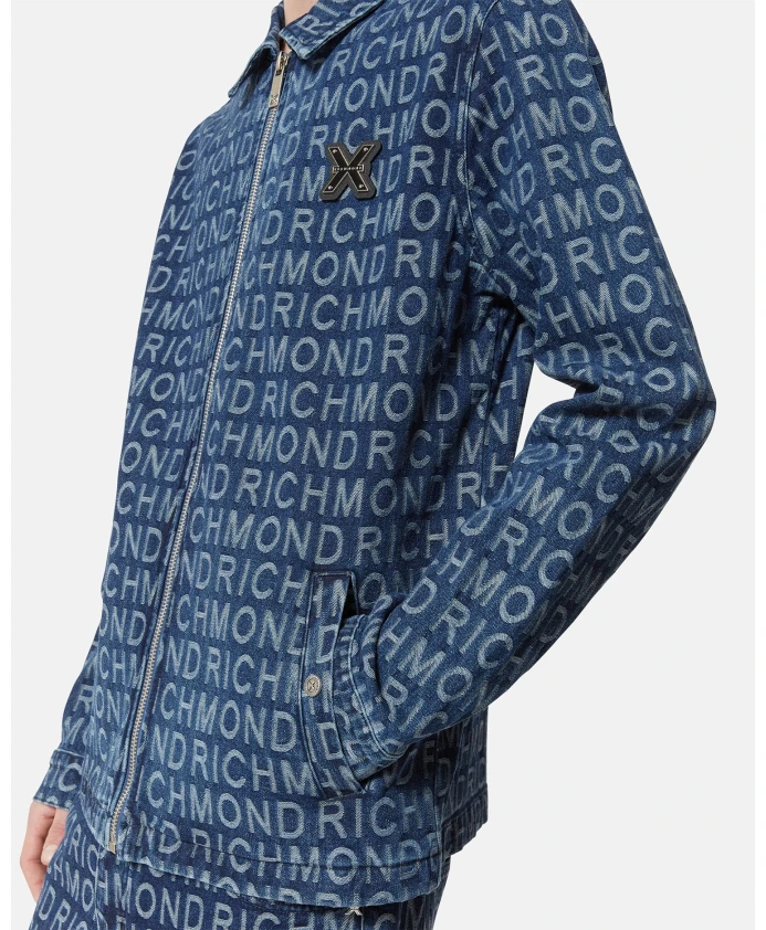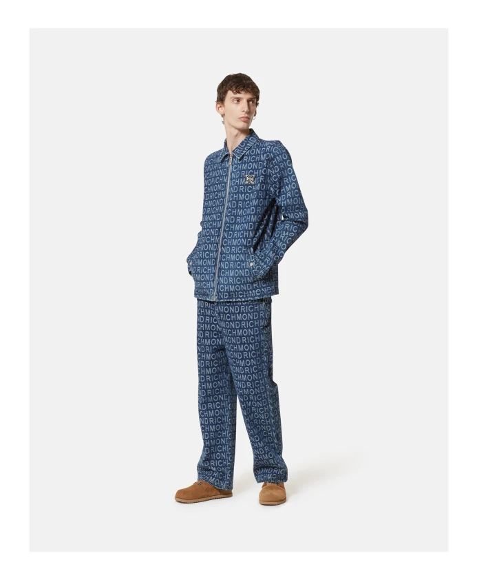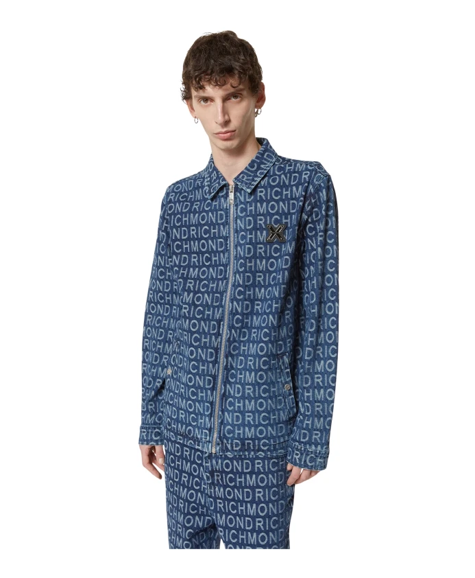 Джинсовая рубашка с логотипом по всей поверхности. Richmond, синий
