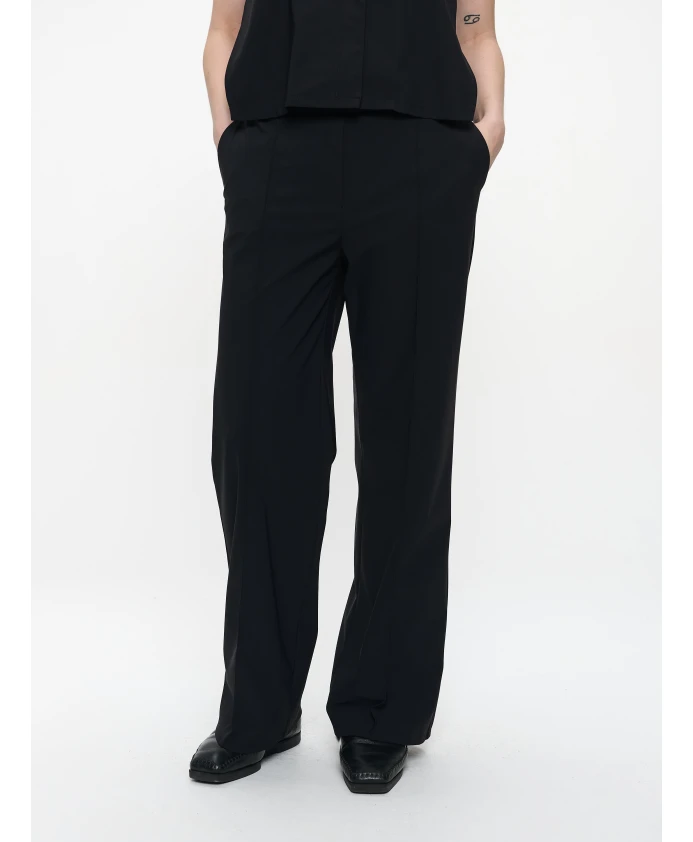Брюки Jane Lushka Thera Pants - это широкие брюки из ворсистого технического трикотажа, сочетающие в себе элегантный силуэт и повседневный комфорт. Мягкая, слегка эластичная ткань и отглаженные складки делают их идеальными для офиса и официальных мероприятий. Ключевые особенности: Черный | Микрофибра | Мягкая, ворсистая отделка | Легкая эластичность для комфорта | Сдержанный, структурированный крой | Эластичный пояс со складками спереди | Боковые карманы | Стильные детали | Широкие штанины | Отглаженные складки | Полная длина | Текстура ворсистого технического трикотажа | Размеры и посадка: Соответствует размеру | Свободный, широкий крой | Средняя посадка на талии | Рост модели 178 см, размер S. Состав и уход: 74% полиамид (микрофибра) | 26% эластан (LYCRA) | Машинная стирка согласно инструкции по уходу (программа EJ).