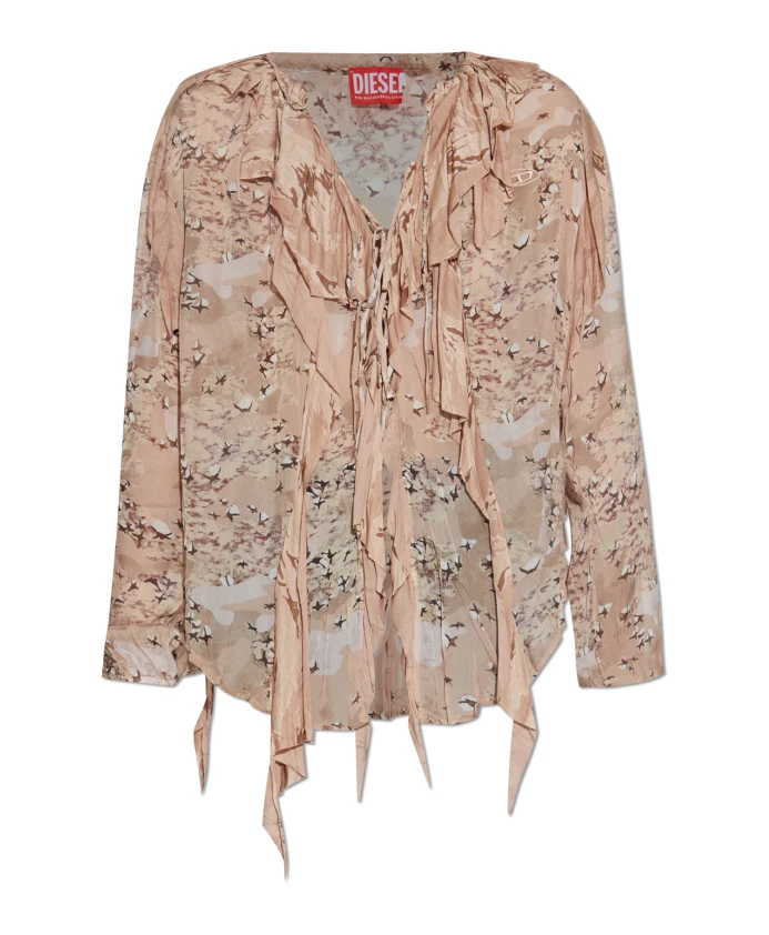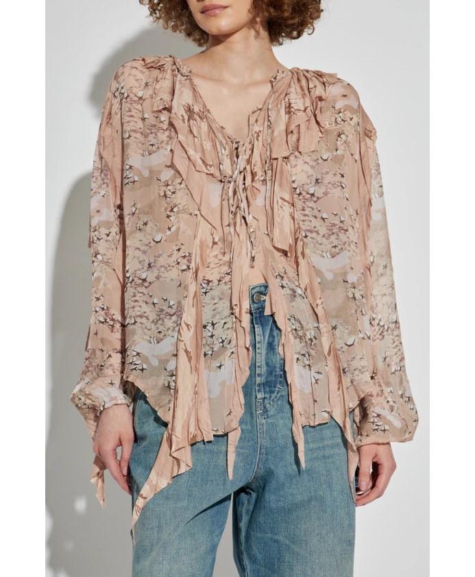 Рубашка Diesel C-LASSY-R1 сочетает в себе свободный асимметричный крой с изысканными оборками и сборками, создавая современную, эффектную блузку. Легкая вискозная ткань и нежный цветочный мотив делают ее подходящей как для элегантных повседневных образов, так и для торжественных случаев. Ключевые особенности: Розовый | Вискоза | Легкая | Полупрозрачная | Воздушная, дышащая ткань | Комфортна в течение всего дня | Оборки и сборки на вырезе и плечах | Удлиненный асимметричный подол | Нежный цветочный мотив в пастельных тонах | Мягкая, полупрозрачная драпировка | Размеры и посадка: Рост модели: 176 см | Обхват груди: 85 см | Обхват талии: 60 см | Обхват бедер: 89 см | Модель носит размер 40 | Свободный крой | Свободный, современный силуэт, обеспечивающий свободу движений и асимметричную драпировку | Состав и уход: Вискоза