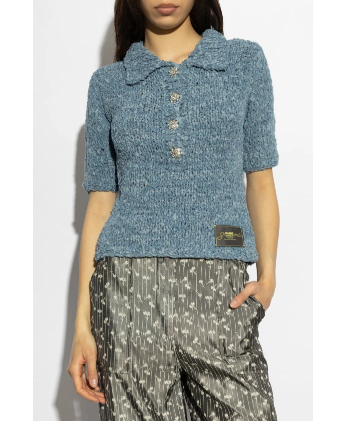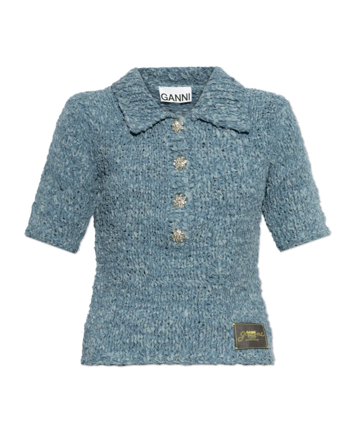 Поло ручной вязки Ganni, синий