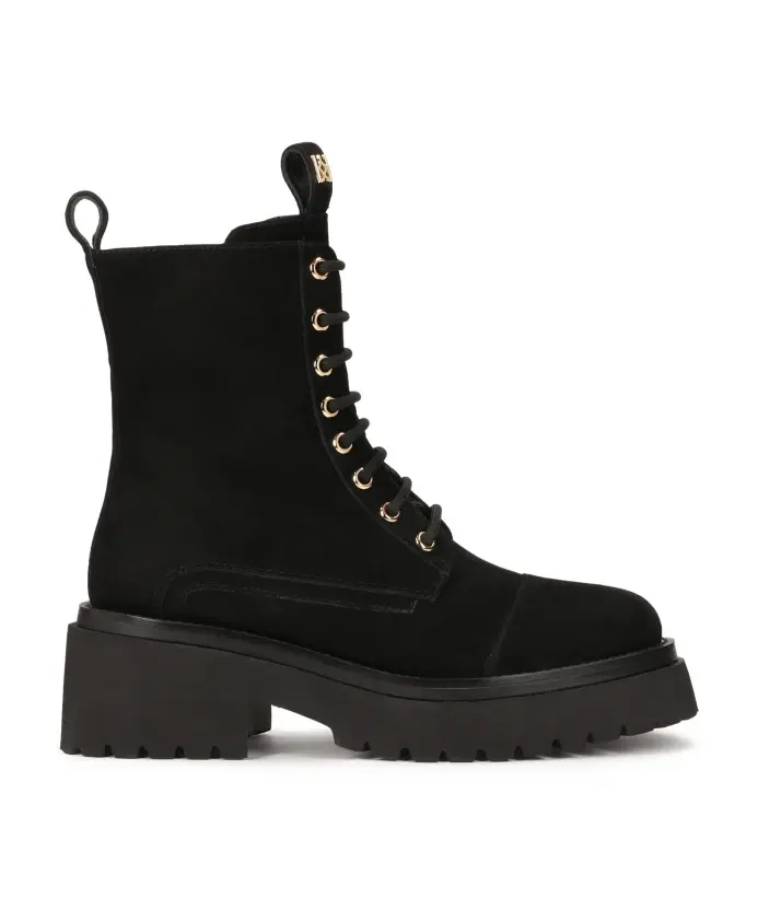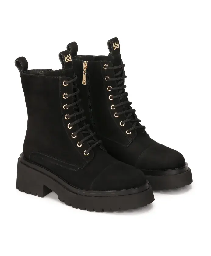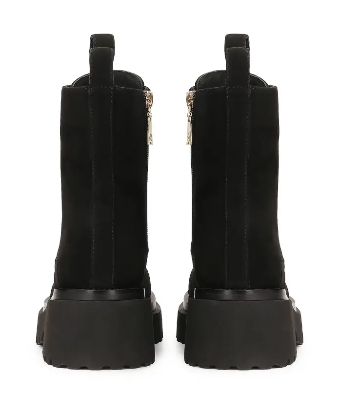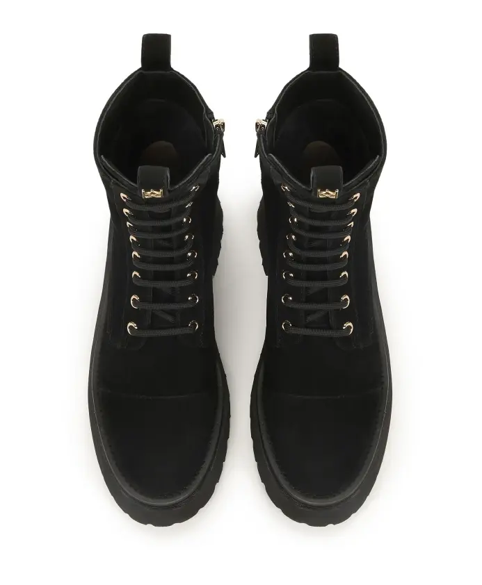 Вдохновленные минималистичной эстетикой, эти кроссовки, изготовленные из высококачественной черной замши, отличаются классическим, вневременным дизайном. Верхняя часть высотой до щиколотки имеет чистые, лаконичные линии, подчеркивающие элегантный, современный стиль. Практичная комбинация шнурков и боковой молнии обеспечивает легкость надевания и снимания, а также идеальную посадку. Прочная рифленая подошва обеспечивает устойчивость и комфорт даже при интенсивном использовании. Эта универсальная модель сочетает в себе классическую элегантность и практичность, что делает ее идеальной для городских осенне-зимних образов, подходящей как для повседневной носки, так и для более формальных случаев. Мягкая подкладка из овчины гарантирует исключительный комфорт, а тонкая меховая подкладка добавляет тепла в прохладные дни.