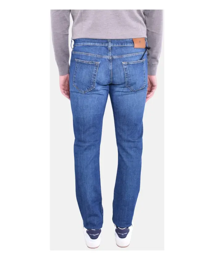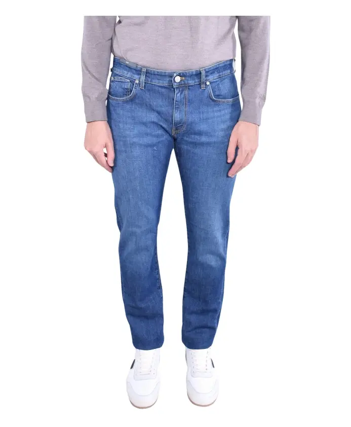 Джинсы PT Torino Swing зауженного кроя изготовлены из эластичного хлопкового денима и представляют собой удобную базовую модель на каждый день. Их зауженный силуэт и средний оттенок делают их универсальной основой для повседневных образов. Ключевые особенности: Синий | Хлопковый деним | Эластичная ткань | Комфортная на ощупь | Пять карманов | Застежка на пуговицу и молнию | Шлевки для ремня | Средний оттенок | Эффект потертости (выцветшие детали) | Швы табачного цвета | Кожаная нашивка с логотипом сзади | Размеры и посадка: Рост модели: 180 см | Модель носит размер: 33 | Зауженный крой | Низкая посадка | Состав и уход: 98% хлопок | 2% эластан | Машинная стирка в холодной воде с вещами аналогичного цвета. Не отбеливать. Сушить в сушилке при низкой температуре или сушить на воздухе. Гладить при низкой температуре.