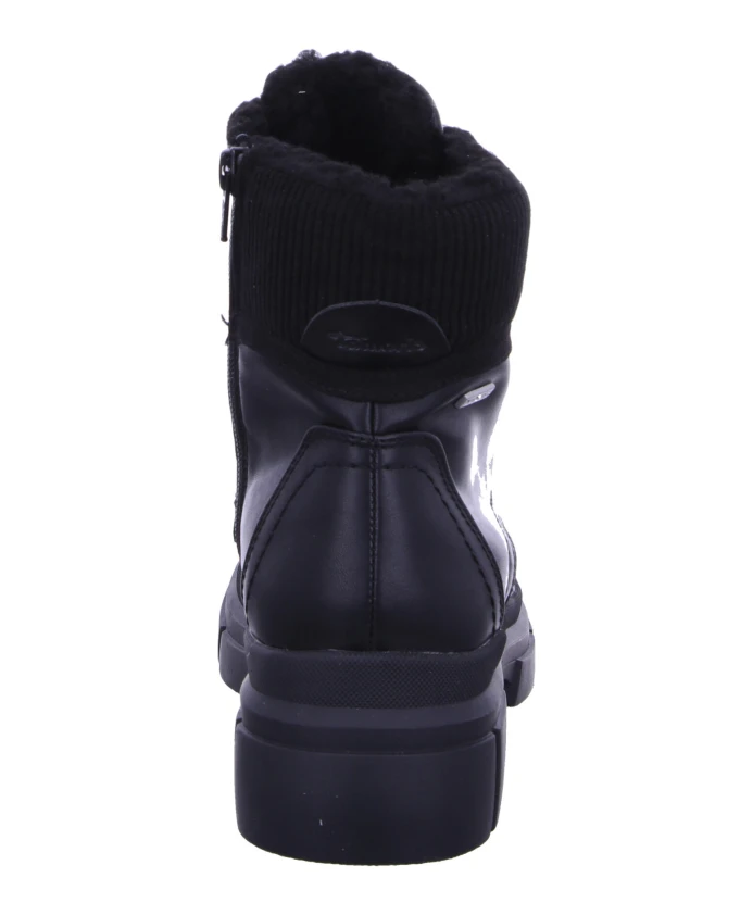 Ботинки Tamaris на шнуровке сочетают в себе теплую подкладку из искусственного флиса и мембрану DUO'TEX для надежной защиты от влаги и идеально подходят для повседневной зимней носки. Шнуровка и внутренняя молния позволяют легко регулировать размер и надевать их. Ключевые особенности: Черный | Матовый черный | Синтетика | Водоотталкивающая мембрана | Дышащая мембрана | Подкладка из искусственного флиса для тепла | Комфортная стелька Touch'it | Мембрана DUO'TEX для защиты от влаги | Шнуровка спереди | Ботинки до щиколотки | Внутренняя боковая молния | Размеры и посадка: Высота каблука: 4 см | Высота платформы: 2 см | Высота голенища: 15 см | Состав и уход: Верх: Синтетика (искусственная кожа) | Подкладка: Искусственный флис | Мембрана: DUO'TEX | Стелька: Комфортная стелька Touch'it | Подошва: Синтетика (пластик)