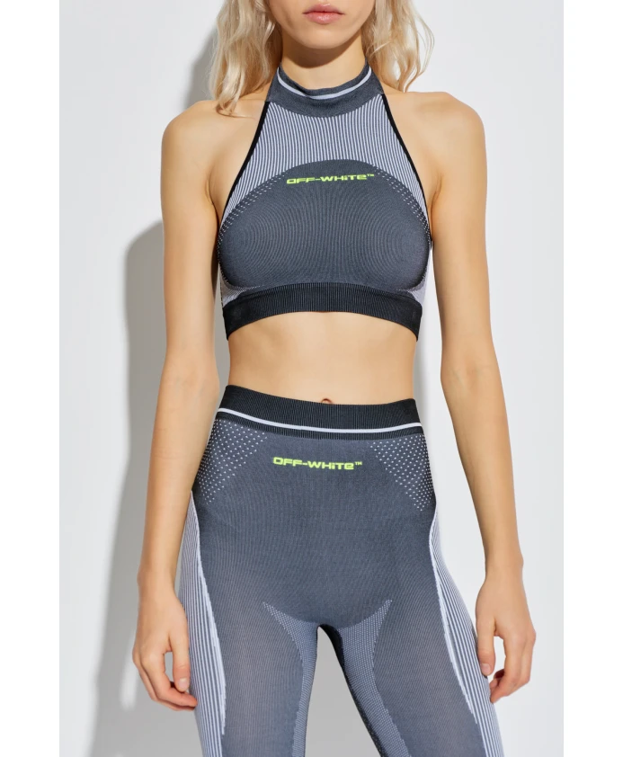 Укороченный топ Off-White с открытыми плечами сочетает в себе спортивную элегантность и облегающий укороченный силуэт, подчеркнутый высоким воротником-халтером и открытыми плечами, что создает современный многослойный или спортивный образ. Ключевые особенности: Серый | Off-White | Дышащая ткань | Эластичный материал | Эластичная конструкция для надежной посадки | Обеспечивает полную свободу движений | Высокий воротник-халтер | Дизайн с открытыми плечами, обнажающий плечи и верхнюю часть спины | Укороченный силуэт | Тонкий вертикальный полосатый узор | Градиентные детали на ткани | Центральный логотип дизайнера на груди | Размеры и посадка: Рост модели: 177 см | Обхват груди модели: 83 см | Обхват талии модели: 61 см | Обхват бедер модели: 89 см | Модель носит размер: XS/S | Облегающий силуэт | Укороченный крой