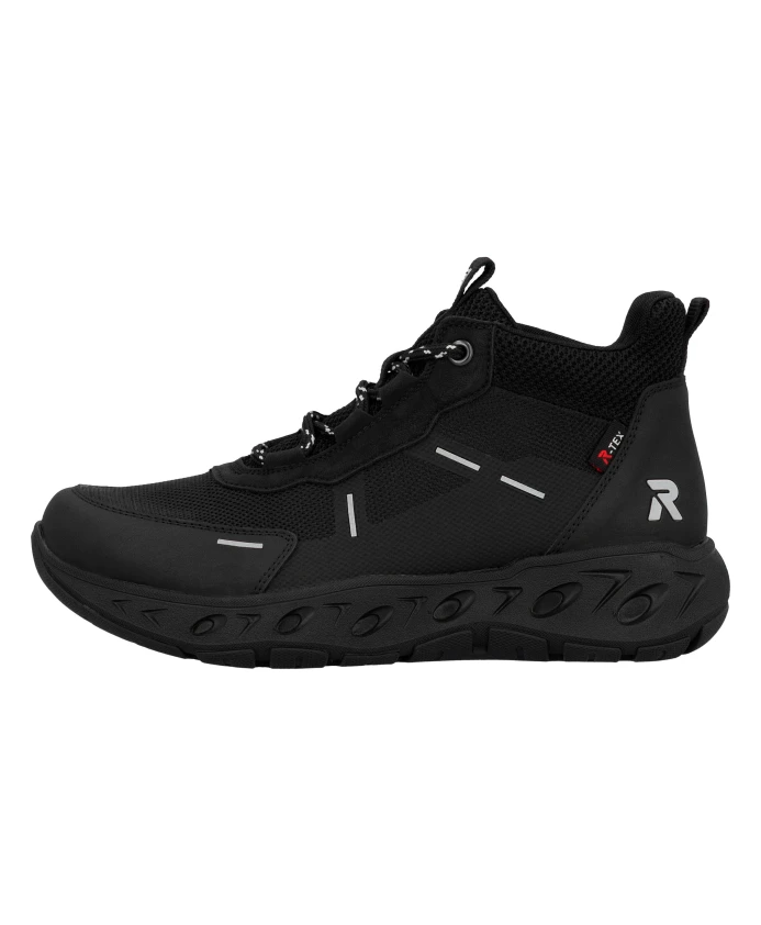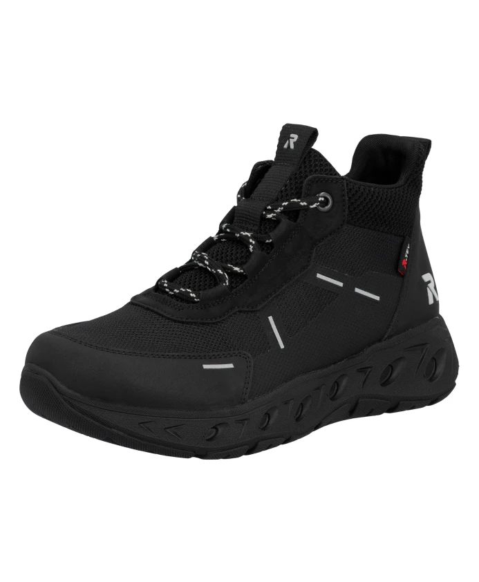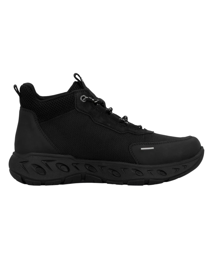 Кроссовки Rieker M6500 сочетают водоотталкивающую защиту RiekerTEX с амортизацией MemoSoft для комфортной повседневной городской носки. Легкая подошва из ЭВА/резины и высокий силуэт делают их идеальными для прогулок в течение всего дня и повседневной одежды. Ключевые особенности: Черный | Текстиль | Мембрана RiekerTEX - водоотталкивающая и дышащая | Легкая, гибкая подошва из ЭВА/резины | Амортизирующая стелька | Шнуровка | Амортизирующая стелька из пены с эффектом памяти MemoSoft | Комфортная ширина для удобной посадки | Высокий силуэт/до щиколотки | Круглый носок | Детали панелей | Размеры и посадка: Высота каблука: 42 мм | Комфортная ширина (идеальная посадка) | Состав и уход: Верх: Текстиль | Мембрана: RiekerTEX (водоотталкивающая, дышащая) | Стелька: пена с эффектом памяти MemoSoft | Подошва: ЭВА/резина