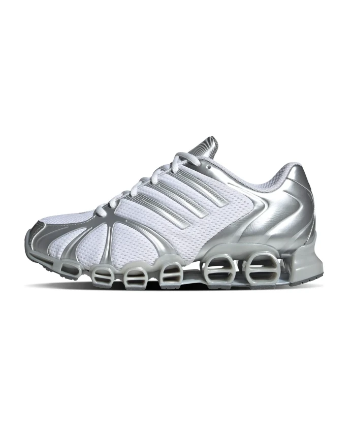 Шагните в будущее с кроссовками adidas Mega Ghostride W Silver. Эти футуристические кроссовки сочетают спортивный дизайн с инновационными технологиями, предлагая комфорт и эффектный стиль. Белый сетчатый верх с блестящими серебристыми вставками обеспечивает отличную вентиляцию и уникальный внешний вид. Инновационная подошва оснащена фирменными мощными пружинами для превосходной амортизации и возврата энергии. Шнуровка придает кроссовкам современный и минималистичный вид. Идеально подходят для тех, кто ценит комфорт, технологии и смелый дизайн. Цвета: белый, серебристый. Верх: сетка, синтетический материал. Подкладка: текстиль. Подошва: резина, амортизация MegaRide. Футуристический дизайн. Инновационная пружинная подошва. Дышащий сетчатый верх. Блестящие серебристые детали. Минималистичный белый дизайн.