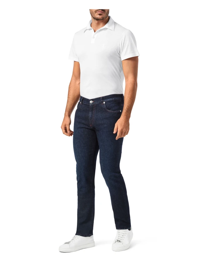 Джинсы Billionaire Jeans Straight Cut CREST - это прямые джинсы из эластичного денима с вышитым гербом бренда, создающие изысканный, но в то же время непринужденный образ. Разработанные для повседневной носки, они сочетают в себе лаконичный силуэт с пятью карманами и ненавязчивые детали бренда. Ключевые особенности: Синий | Темно-синий | Деним | Эластичный | Застежка на молнию | 5 карманов | Вышитый культовый герб на правом заднем кармане | Декоративная пуговица на поясе с логотипом бренда | Металлические заклепки с логотипом бренда | Эффект потертости | Размеры и посадка: Длина штанины: 18 см | Прямой крой | Состав ткани и уход: 97% хлопок, 3% эластан | Машинная стирка в холодной воде (30°C). Не отбеливать. Не подвергать химчистке. Гладить при низкой температуре. Стирать наизнанку и отдельно.