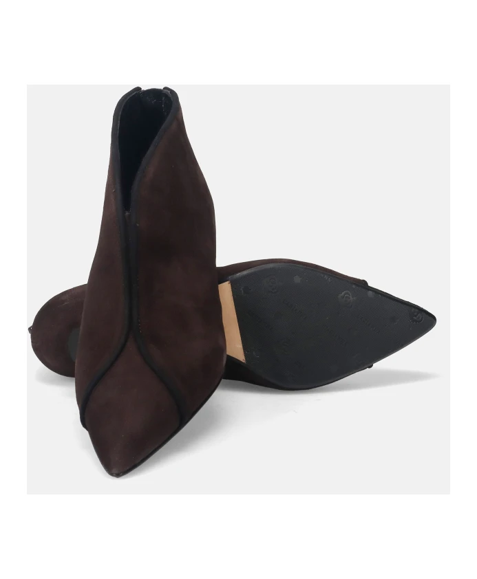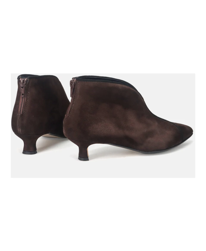 Ботильоны L'Arianna Tronchetto сочетают в себе итальянский комфорт ручной работы и элегантный заостренный силуэт. Созданные для комфорта в течение всего дня, они сочетают водоотталкивающую замшу с гибкой конструкцией Sacco, что обеспечивает комфорт и элегантность. Ключевые особенности: Коричневый | Темно-коричневый | Замша | Водоотталкивающая замша | Конструкция Sacco (в виде мешочка) для гибкости | Кожаная стелька с пенной амортизацией | Застежка-молния для удобства надевания и снимания | Заостренный носок | Низкий каблук-шпилька | Внутренняя застежка-молния | Элегантный силуэт щиколотки | Размеры и посадка: Высота каблука: 4 см | Стандартная посадка - выбирайте свой обычный размер. | Состав и уход: Верх: 100% кожа (замша) | Стелька: Кожа и пена (конструкция Sacco) | Подошва: Кожа и резина
