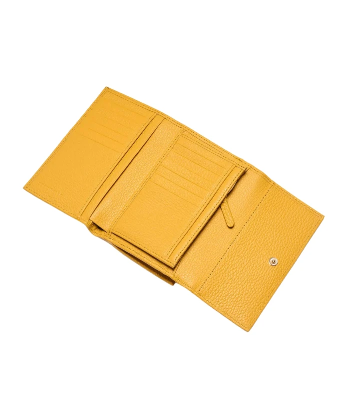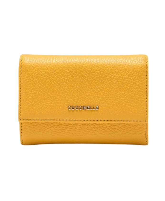 Мягкий металлический кошелек Coccinelle сочетает в себе зернистую кожу и металлический логотип для аккуратной организации вещей на каждый день. Компактная конструкция с клапаном надежно хранит карты, наличные и монеты. Ключевые особенности: Желтый | Солнечный | Зернистая кожа | Мягкая кожа, окрашенная барабанным способом | Легко чистится | Застежка-кнопка | Внутренний карман на молнии для монет | Несколько отделений для карт | Отделение для банкнот | Организованные внутренние отделения | Конструкция с клапаном | Металлический логотип Coccinelle | Фурнитура светло-золотистого цвета | Зернистая текстура | Размеры и посадка: 14 x 10 x 3 см | Вес: 170 г | Состав и уход: 100% коровья кожа | Подкладка: 100% полиэстер | Чистить мягкой влажной тканью. Избегать длительного воздействия воды и масла.