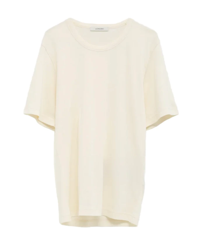 Футболка Lemaire Rib - это свободная хлопковая футболка в рубчик, предназначенная для повседневной носки и многослойных образов. Изготовлена в Португалии, имеет фактурную трикотажную ткань в рубчик и простой открытый круглый вырез. Ключевые особенности: Светло-кремовый цвет | Хлопок | Открытый круглый вырез | Короткие рукава | Спущенные плечи | Текстура ребристого трикотажа | Воротник в рубчик | Плоские швы на плечах | Хлопковый трикотаж средней плотности | Размеры и посадка: Свободный крой, слегка приталенный в области бедер | Соответствует размеру - заказывайте свой обычный размер | Состав и уход: 100% хлопок | Машинная стирка при 30°C в щадящем режиме. Не отбеливать. Не сушить в сушильной машине. Гладить в прохладном месте. Не подвергать химчистке. Сушить в горизонтальном положении.