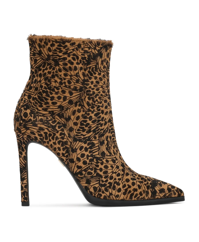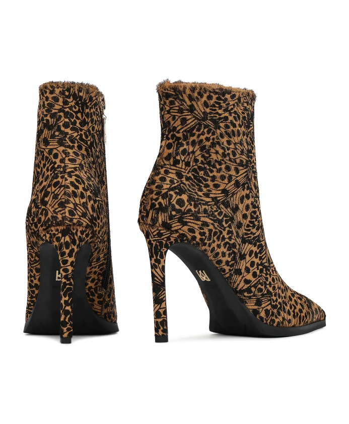 Ботильоны на каблуке Kazar Maylie сочетают в себе верх из кожи с узором и отделку из натурального ворса, создавая фактурный, художественный образ. Изящный высокий каблук и заостренный носок создают утонченный силуэт, идеально подходящий для шикарных и эффектных нарядов. Ключевые особенности: Черный | Натуральная кожа | Подкладка из полуанилиновой овчины | Застежка-молния сбоку | Абстрактный узор темно-коричневого и черного цвета | Отделка из натуральной кожи | Заостренный носок | Изящный высокий каблук | Металлические детали золотистого цвета | Размеры и посадка: Высота каблука: 10 см | Высота голенища: 13 см | Размеры указаны для размера: 37 | Состав и уход: Натуральная кожа (верх) | Подкладка из полуанилиновой овчины | Синтетическая подошва | Металлическая фурнитура золотистого цвета