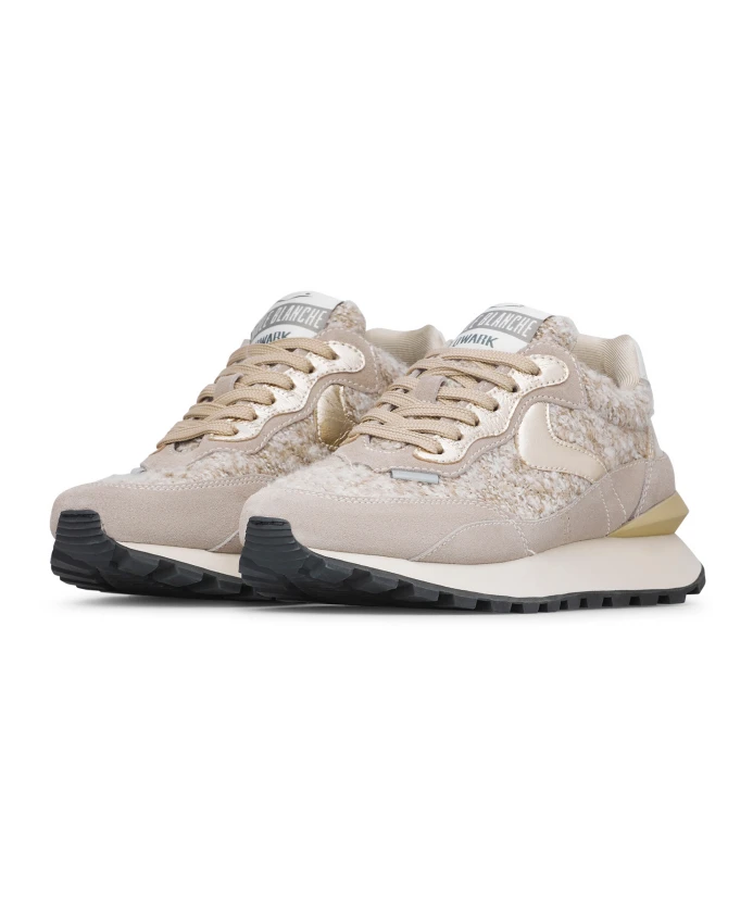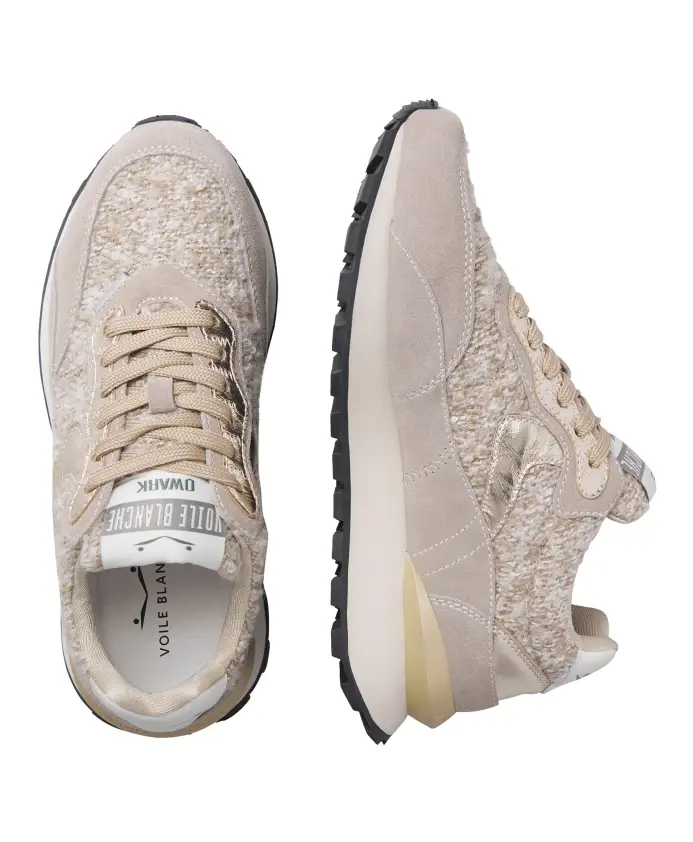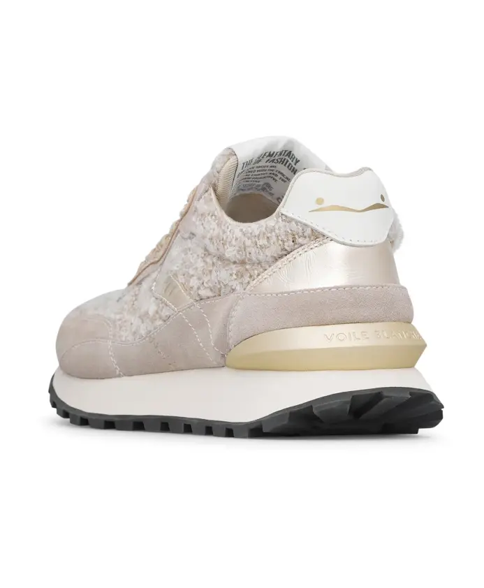 Кроссовки Voile Blanche Qwark Hype сочетают в себе гламур и спортивный дух: верх из ткани с эффектом люрексового твида, золотистые замшевые и кожаные акценты. Созданы для того, чтобы добавить изысканного блеска повседневным образам, сохраняя при этом легкость и комфорт. Ключевые особенности: Серый | Голубино-серый | Кожа и текстиль | Легкая резиновая подошва | Шнуровка | Кожаная подкладка и стелька | Сверхлегкая резиновая подошва | Верх из ткани с эффектом люрексового твида | Золотистые замшевые и кожаные детали | Золотистые шнурки | Трехмерный золотистый спойлер под пяткой | Размеры и посадка: Высота каблука: 4 см | Соответствует размеру | Состав и уход: Верх: Текстиль с эффектом люрексового твида, замша и детали из кожи с покрытием | Подкладка: Кожа | Стелька: Кожа | Подошва: Резина