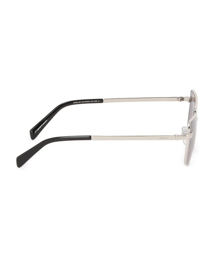 Женские солнцезащитные очки классического черного цвета в легкой серебристой металлической оправе геометрической формы. Элегантный и современный дизайн дополняют градиентные линзы, плавно переходящие от глубокого черного к более светлым оттенкам, обеспечивая эффективную защиту от солнца. Сдержанная, холодная цветовая палитра в сочетании с минималистичной формой делает эту модель идеальной как для городского, так и для более элегантного стиля. Регулируемые носовые упоры обеспечивают удобную посадку для всех форм лица. Фильтр UV 400 защищает глаза от солнечных лучей. Линзы имеют коэффициент светопропускания 3, что позволяет носить их на ярком солнце. Солнцезащитные очки KAZAR поставляются с мягким, деликатным тканевым чехлом, который не поцарапает линзы. Этот продукт сертифицирован CE.