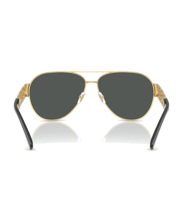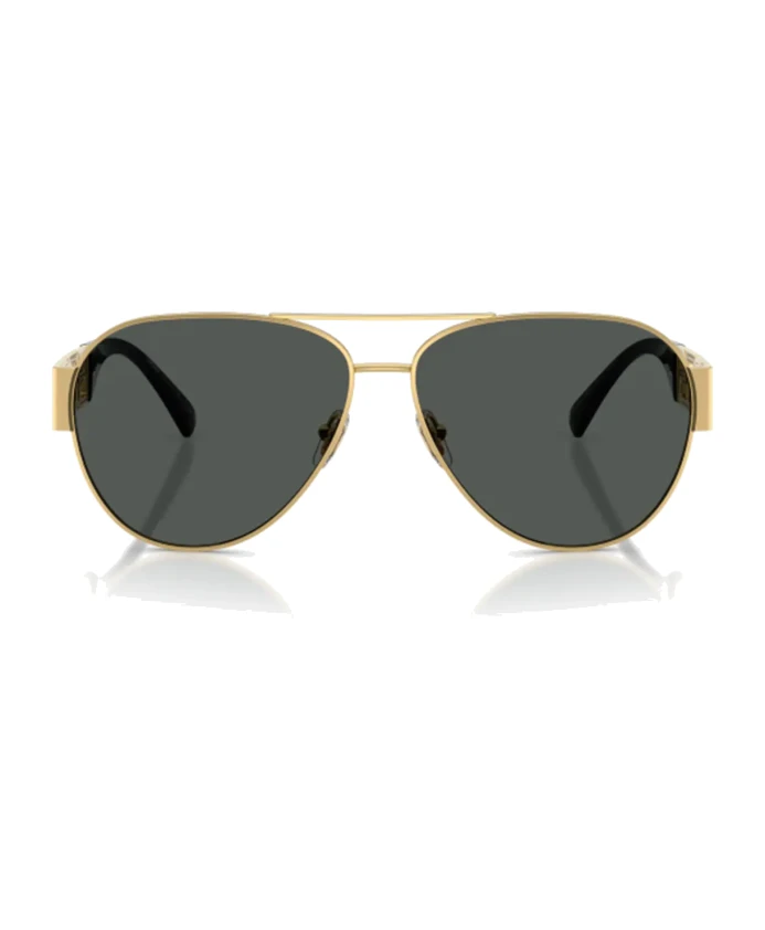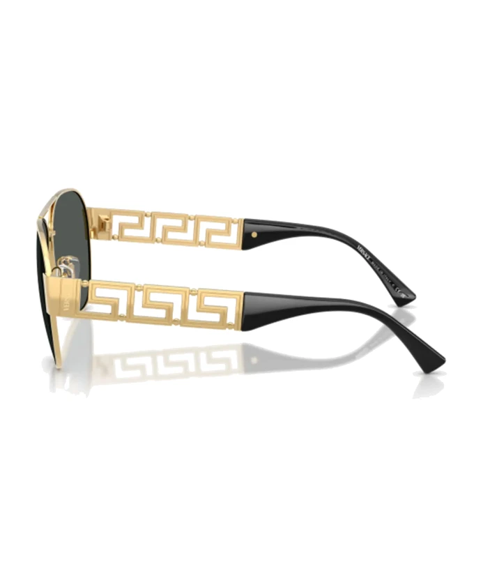 Солнцезащитные очки Versace VE2289 переосмысливают классический силуэт «авиатор» благодаря полированной золотистой металлической оправе и фирменному узору Greca на дужках. Темно-серые линзы обеспечивают четкое зрение и надежную защиту от солнца для повседневного использования. Ключевые особенности: Золотистый | Темно-серый | Металл | 100% защита от УФ-излучения | Линзы категории 3 | Неполяризованные линзы | Регулируемые носовые упоры | В комплекте защитный футляр и салфетка из микрофибры | Форма «авиатор» | Гравировка Greca на дужках | Блестящая золотистая отделка | Темно-серые линзы | Размеры и посадка: Ширина линзы: 61 мм | Переносица: 13 мм | Длина дужки: 145 мм | Состав и уход: Металл. Протирайте очки салфеткой из микрофибры и храните их в защитном футляре, когда не используете.