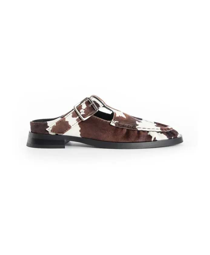 Мюли Miista Gianna с пряжкой сочетают в себе стиль мокасин и Т-образного ремешка с передней пряжкой, создавая элегантные повседневные мюли. Версия из замши из коровьей кожи сочетает в себе низкий блочный каблук и мягкую стельку для комфортной городской носки. Ключевые особенности: Разноцветные | Коричневые | Белые | Замша | Стелька из пеноматериала с эффектом памяти | Резиновая подошва для сцепления | Регулируемая пряжка | Передняя пряжка | Открытый каблук | Блочный каблук | Рисунок коровьей кожи | Размеры и посадка: Высота каблука 2,5 см | Высота каблука может варьироваться в зависимости от размера обуви | Состав и уход: Текстиль из замши с принтом из коровьей кожи | Подкладка из коровьей кожи растительного дубления | Стелька из пеноматериала с эффектом памяти | Резиновая подошва