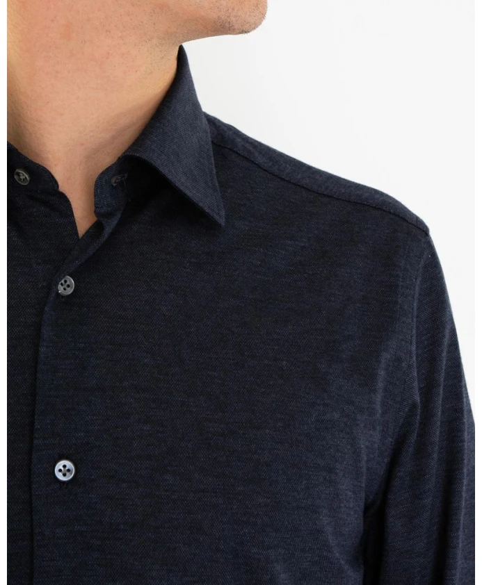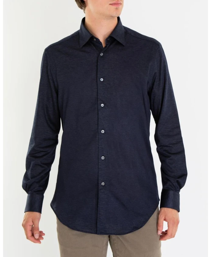 Рубашка Pal Zileri Milano с воротником-стойкой из темно-синего хлопкового трикотажа. Рубашка стандартного кроя с воротником-стойкой Milano, подходящая как для элегантных, так и для повседневных образов. Ключевые особенности: Синий | Хлопок | Мягкая трикотажная ткань | Дышащая | Застежка на пуговицы | Мягкая конструкция для свободы движений | Воротник-стойка Milano | Длинные рукава | Трикотажная ткань | Стандартные манжеты | Размеры и посадка: Стандартный крой | Рост модели 188 см, размер 41 (итальянский) | Состав и уход: 100% хлопок | Стирать при температуре не выше 30°C в щадящем режиме. Не отбеливать. Не сушить в сушильной машине. Гладить при температуре не выше 110°C без пара. Химчистка с использованием тетрахлорэтилена в щадящем режиме. Сушить в горизонтальном положении.