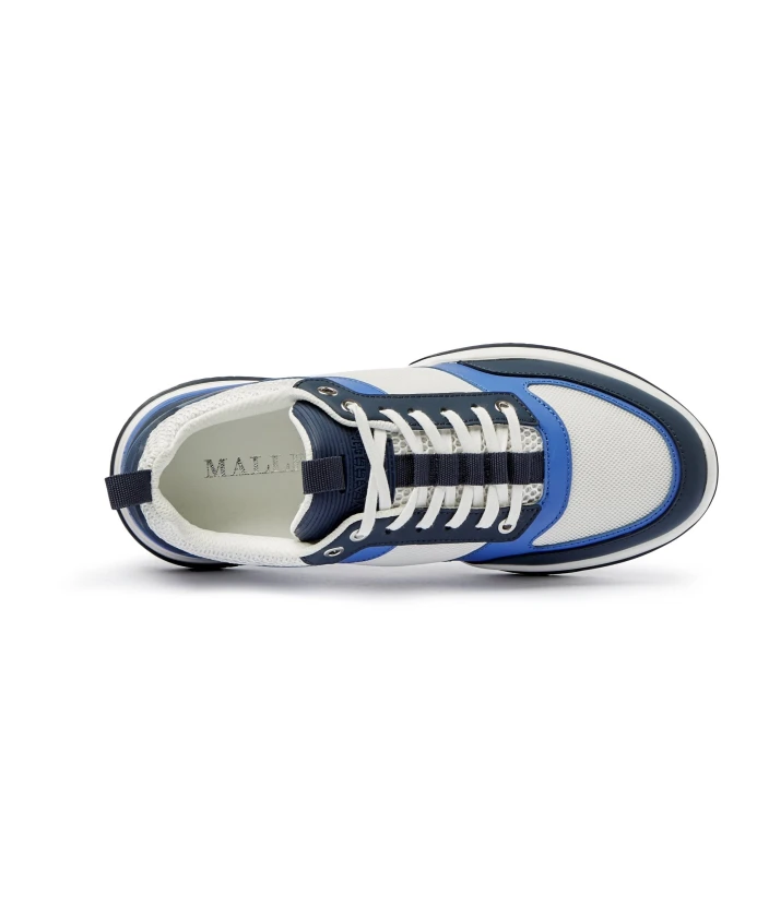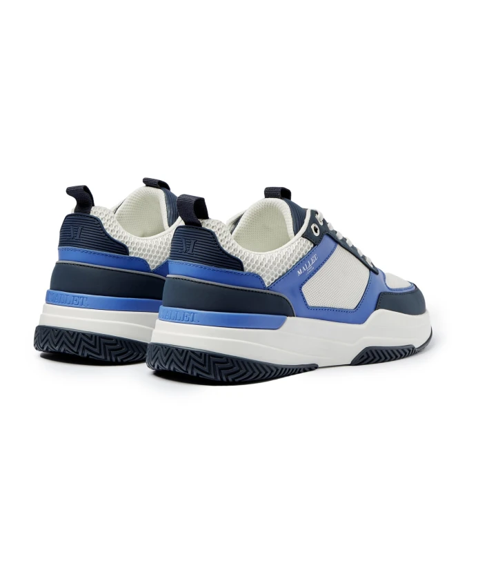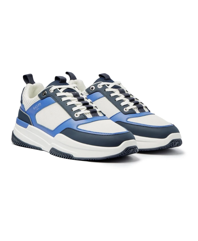 Белые и синие кожаные кроссовки, современный образ. Mallet London, синий