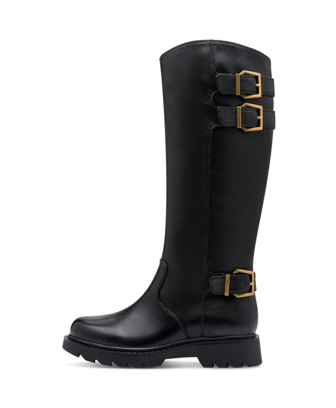 Высокие сапоги Tamaris сочетают в себе характерную текстурированную подошву, двойные пряжки и стельку из пеноматериала TOUCHit с эффектом памяти для комфортной городской носки. Конкретное название модели Tamaris не указано - товар продается под артикулом 1-25623-45-001. Ключевые характеристики: Черный | Синтетика | Стелька из пеноматериала TOUCHit с эффектом памяти | Противоскользящая подошва | Амортизирующая подошва | Застежка-молния | Несъемная стелька | Двойные пряжки | Толстая текстурированная (с эффектом потрескивания) подошва | Закругленный носок | Размеры и посадка: Высота голенища: 39,5 см | Высота каблука: 45 мм | Состав и уход: Верх: Синтетика | Подкладка: Текстиль и синтетика | Стелька: Текстиль (мягкая пена с эффектом памяти TOUCHit) | Подошва: Синтетика