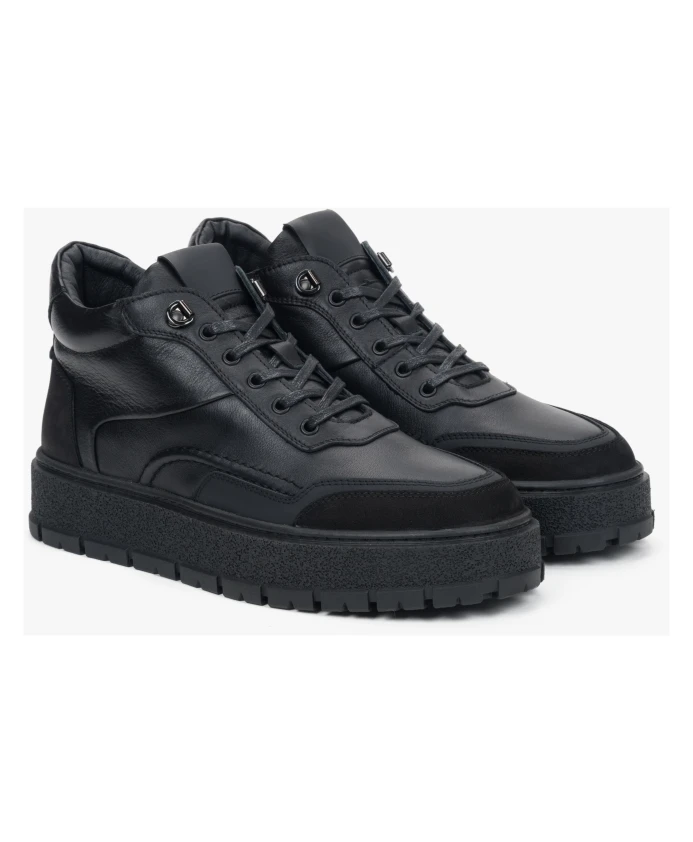 Зимние кожаные ботинки с теплой подкладкой Estro, черный