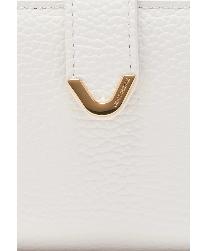 Кошелек Coccinelle Dew сочетает в себе фирменный элемент в виде медиатора и длинный, компактный силуэт, разработанный для повседневной организации вещей. Он предлагает вместительное, хорошо организованное хранение и функции безопасности, подходящие для ежедневного использования. Ключевые характеристики: Белый | Кожа | Защита от RFID | Легко чистится | Кожаный клапан с застежкой-кнопкой | Боковой карман на молнии для монет | Восемь отделений для карт | Отделение для банкнот | Два внутренних кармана | Деталь в виде медиатора | Текстура зернистой кожи | Фурнитура с золотым покрытием | Деталь с логотипом | Размеры и посадка: 14 x 9 x 0 см - 130 г | Состав и уход: Кожа | Чистить мягкой влажной тканью; избегать агрессивных моющих средств или дезинфицирующих гелей.