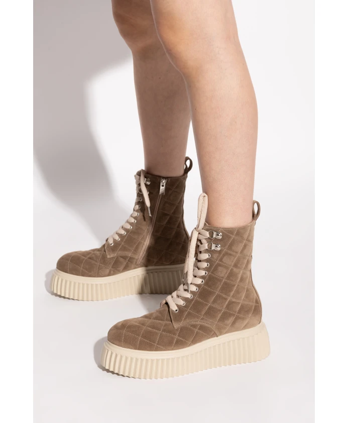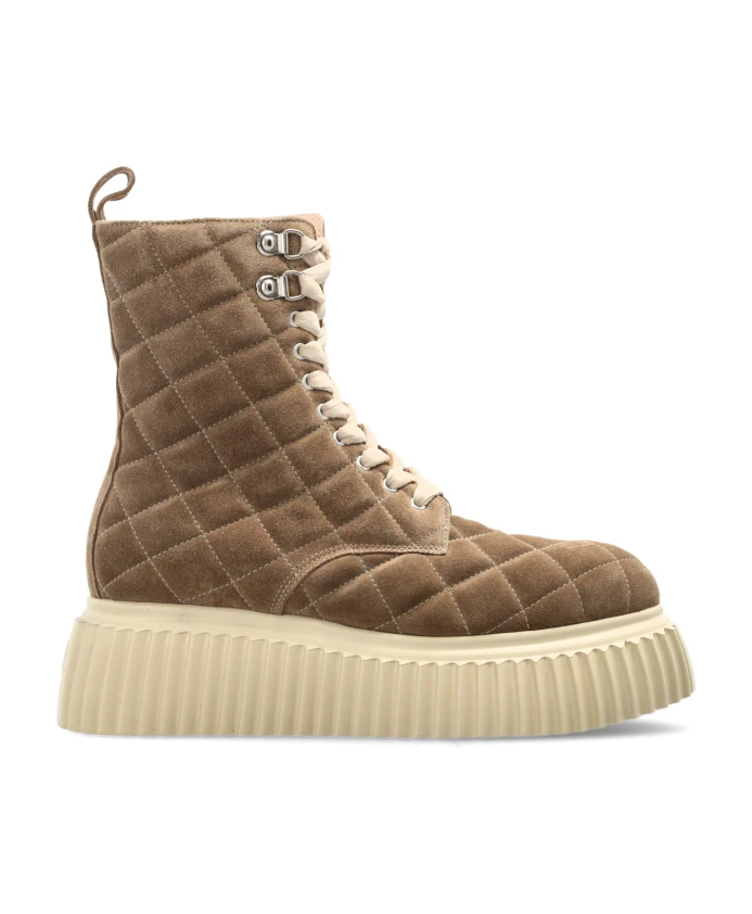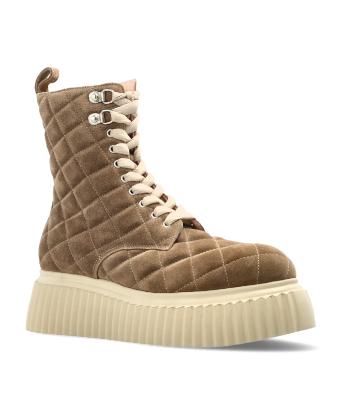 Замшевые туфли на платформе AGL Elsa сочетают в себе итальянское мастерство и эффектный современный силуэт на платформе. Они имеют объемный стеганый замшевый верх и формованную подошву с вертикальными канавками. Ключевые особенности: Коричневый | Замша | Легкая резиновая подошва | Шнуровка с металлическими люверсами | Застежка-молния сбоку для удобства надевания и снимания | Петля сзади | Массивный силуэт | Высокое голенище выше щиколотки | Закругленный носок | Декоративная стежка в виде крупной, правильной клетки | Широкая платформа с вертикальными канавками | Небольшое тиснение на пятке | Петля сзади | Размеры и посадка: Высота платформы: 4,5 см | Высота платформы в самой высокой точке: 6,5 см | Состав и уход: Верхний слой: 100% кожа | Подошва: 100% резина