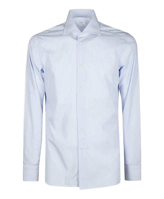 Эта полосатая хлопковая рубашка от Borriello Napoli сочетает в себе неаполитанский крой и изысканный французский воротник, создавая элегантный, формальный образ. Легкий полосатый узор и перламутровые пуговицы делают ее идеальной для особых случаев или элегантной повседневной носки. Основные характеристики: Светло-голубой | Белый | Хлопок | Дышащая ткань | Перламутровые пуговицы | Манжеты на пуговицах | Съемные вставки для воротника | Французский воротник | Полосатый узор | Классическая застежка на пуговицы | Размеры и посадка: Приталенный крой | Состав ткани и уход: 100% хлопок | Машинная стирка в холодной воде (макс. 30°C). Перед стиркой снимите вставки для воротника. Не отбеливать. Не сушить в сушильной машине. Гладить при низкой или средней температуре.