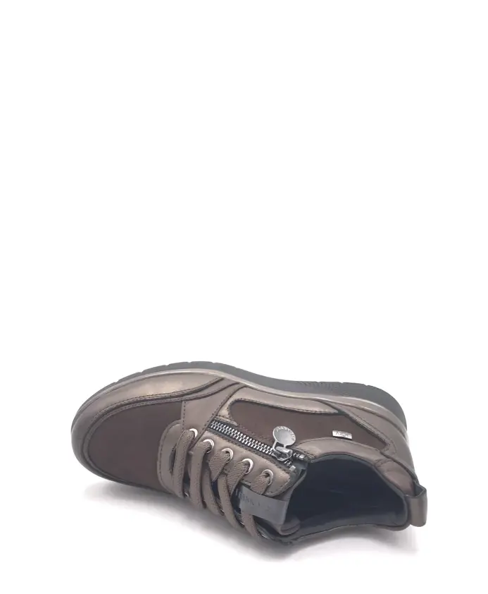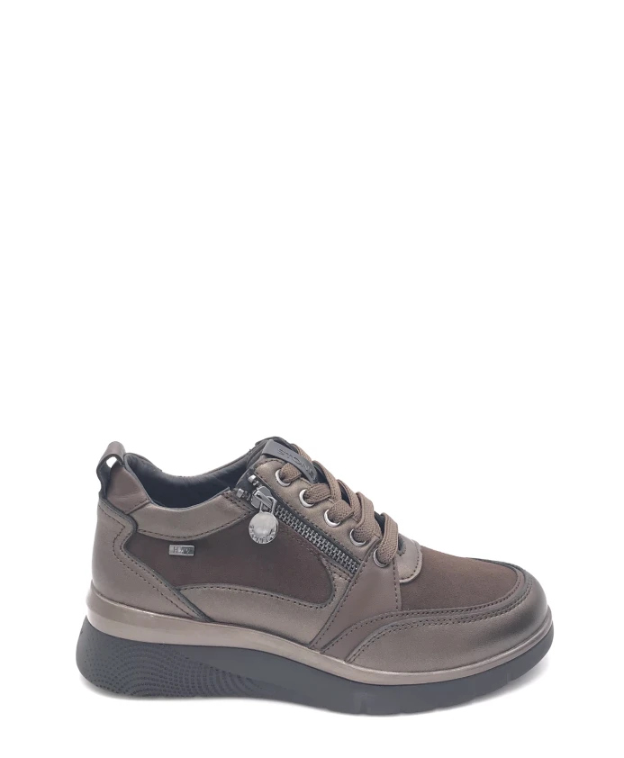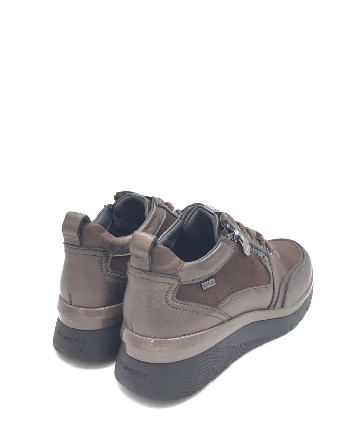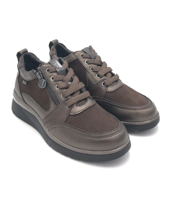 Кроссовки Stonefly сочетают мягкую кожу и замшу с деталями из кожи с покрытием, создавая элегантный повседневный образ. Застежка на молнию и шнуровку, а также съемная кожаная и латексная стелька с гелевой вставкой Blusoft обеспечивают амортизацию и комфорт при ношении в городе. Ключевые особенности: Коричневый | Кожа и замша | Гелевая вставка Blusoft для амортизации | Резиновая подошва для сцепления | Застежка на молнию и шнуровку | Эластичная тканевая подкладка для регулируемой посадки | Съемная кожаная и латексная стелька | Верх из кожи и замши | Детали из кожи с покрытием | Размеры и посадка: Высота каблука: 3 см | Состав и уход: Верх: Кожа, замша, кожа с покрытием | Подкладка: Кожа, эластичная ткань | Стелька: Кожа и латекс (съемная) | Подошва: Резина