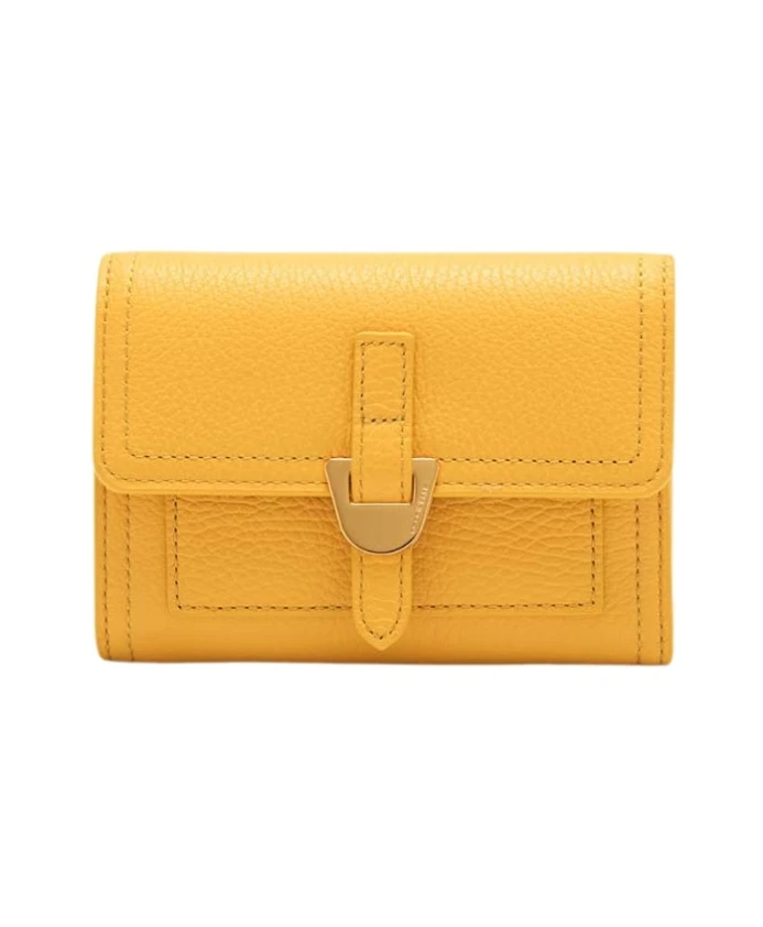 Кошелек Coccinelle Campus сочетает в себе организованное хранение и фирменную металлическую деталь в форме медиатора. Конструкция с центральным клапаном позволяет аккуратно хранить карты, наличные и монеты для повседневного использования. Ключевые особенности: Желтый | Солнечный | Зернистая кожа | Защита от RFID | Прочный | Легко чистится | Застежка-кнопка | Внутренний карман на молнии для монет | Внешний карман на молнии для монет | Десять отделений для карт | Отделение для банкнот с разделителем | Четыре внутренних кармана | Металлическая деталь в форме медиатора | Фурнитура золотистого цвета | Логотип | Силуэт клапана | Размеры и посадка: 14 x 10 см | 160 г | Средний размер | Состав и уход: 100% зернистая телячья кожа | Чистить мягкой влажной тканью.