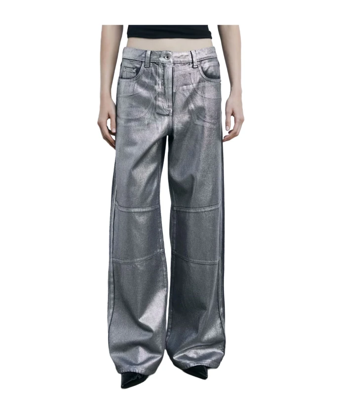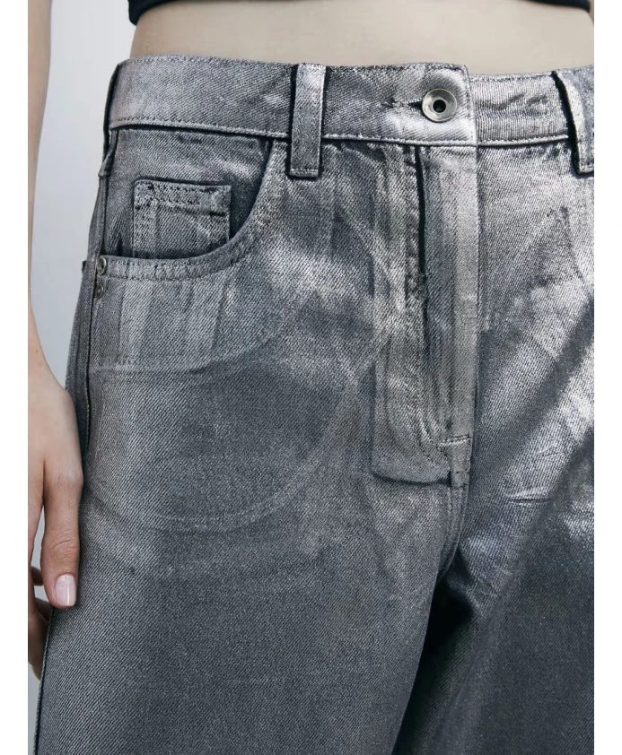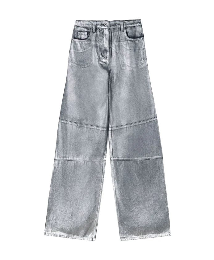 Брюки Patrizia Pepe с пятью карманами сочетают в себе джинсовую ткань с покрытием и прямой, широкий силуэт, создавая гламурный городской образ, подходящий как для дневного, так и для вечернего выхода. Изящная строчка спереди и декоративные складки на коленях придают брюкам структурированный, современный вид. Ключевые особенности: Серебристый цвет | Хлопок | Покрытие | Мягкая, но фактурная ткань | Пять карманов | Прямой крой | Детальная строчка спереди | Декоративные складки на коленях | Низкая посадка | Размеры и посадка: Размер 26: Длина по бедрам 110 см | Прямой крой | Широкий силуэт | Низкая посадка | Материал и уход: Основная ткань: 100% хлопок | Основная подкладка: 65% полиэстер, 35% хлопок | Ручная стирка. Инструкции по стирке см. на этикетке.