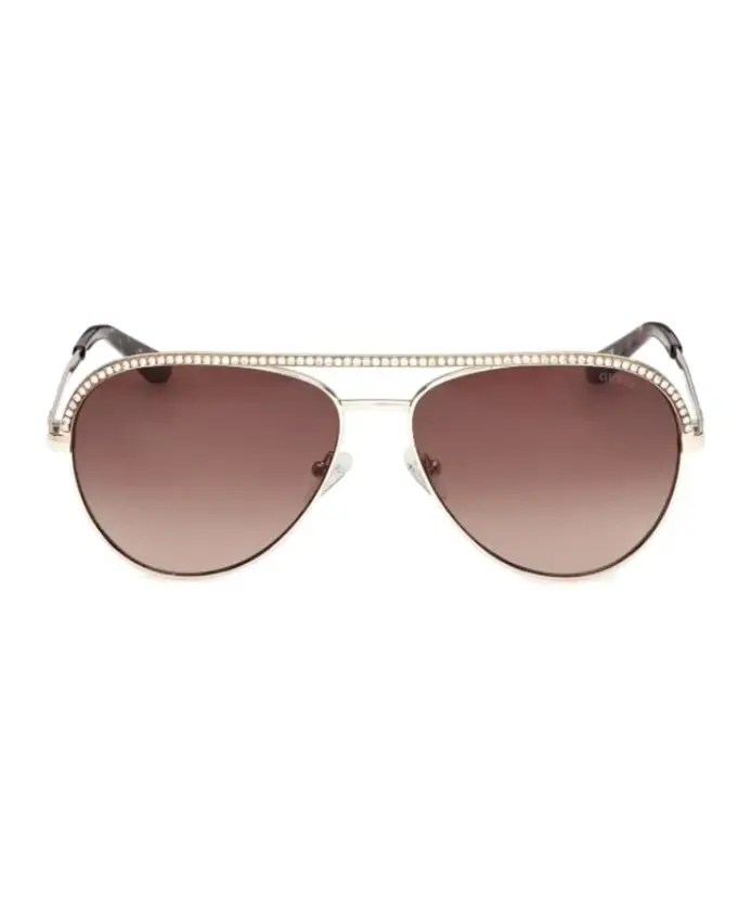 Солнцезащитные очки Guess Aviator сочетают в себе блестящую золотистую металлическую оправу с эффектным силуэтом с двойной перемычкой и изящными акцентами из кристальных стразов, создавая утонченный и гламурный образ. Градиентные коричневые линзы добавляют визуальной теплоты, обеспечивая при этом полную защиту от УФ-излучения для повседневного ношения. Ключевые особенности: Золотистый | Коричневый | Металл | Блокирует 100% УФ-лучей | Двойная перемычка | Коррозионностойкая металлическая оправа | Силуэт «авиатор» | Двойная перемычка | Детали из кристальных стразов на верхней части оправы | Градиентные коричневые линзы | Размеры и посадка: Ширина линзы: 60 мм | Ширина перемычки: 15 мм | Длина дужки: 140 мм | Универсальный размер | Состав и уход: Металл