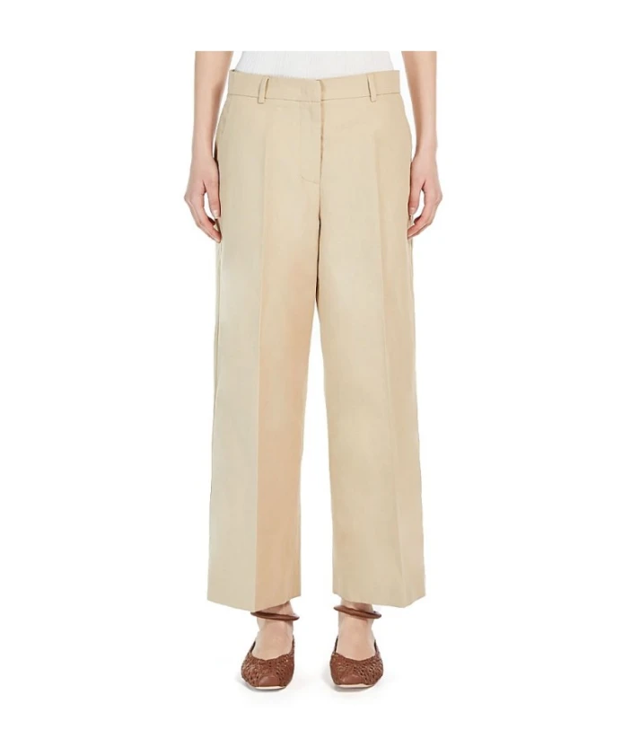 Брюки Weekend Max Mara ZIRCONE Wide сочетают в себе легкую хлопково-льняную саржу и широкий, свободный силуэт для непринужденного стиля выходного дня. Дизайн включает эластичный пояс и практичные боковые карманы для комфорта и удобства. Ключевые особенности: Бежевый | Колониальный | Хлопково-льняная саржа | Легкая ткань | Дышащая | Эластичный пояс | Французские боковые карманы | Широкие штанины | Твиловая текстура | Однотонный цвет | Размеры и посадка: Широкий крой | Эластичный пояс | Укороченная длина до щиколотки | Состав и уход: 74% хлопок | 26% лен | Ручная стирка в холодной воде (макс. 40°C); не отбеливать; не сушить в сушильной машине; сушить в тени; гладить при низкой температуре; профессиональная химчистка (перхлорэтилен, деликатный режим).