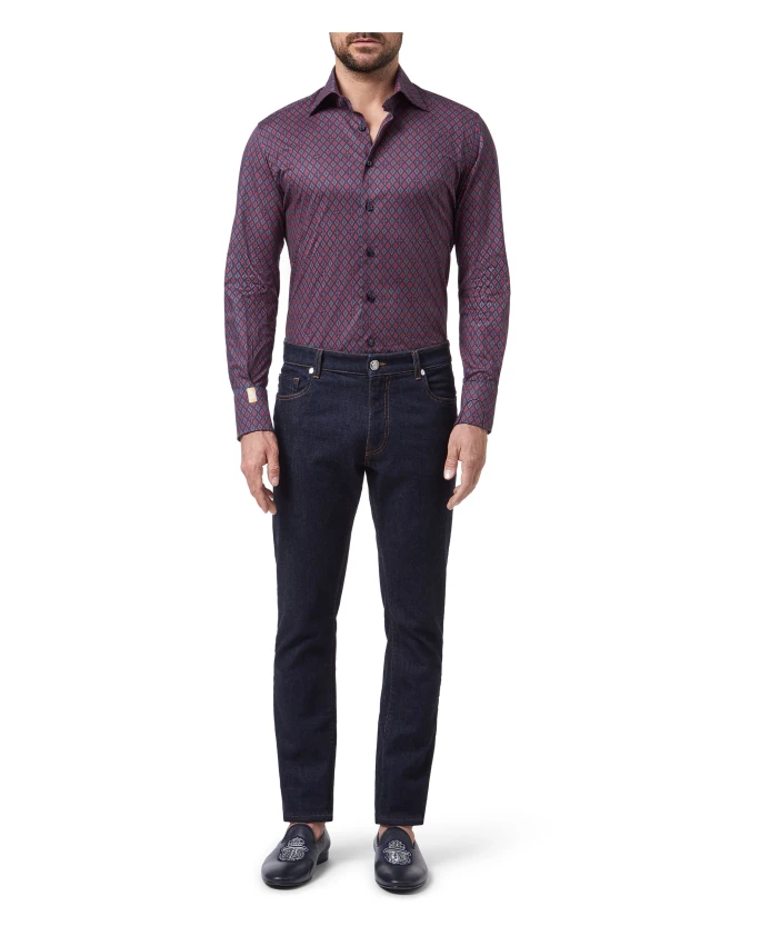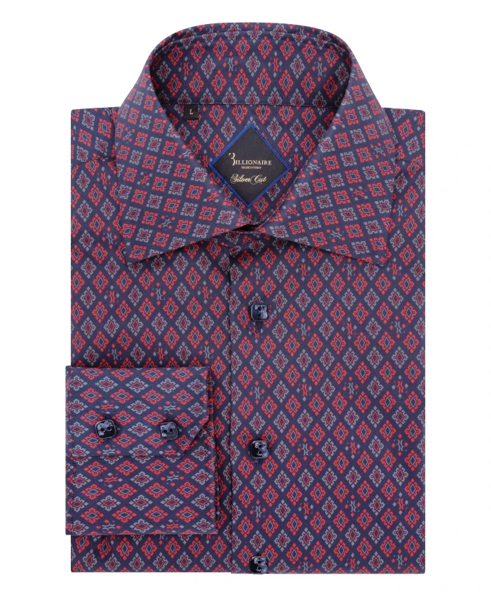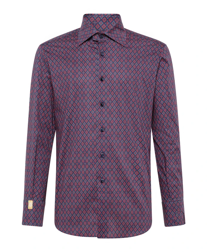 Рубашка Billionaire Silver Cut LS Flavio Geometric Shirt сочетает в себе фирменный геометрический принт и монограмму по всей поверхности с эластичным хлопком, создавая приталенный силуэт. Небольшой воротник Milano в виде листьев и манжета в виде часов добавляют изысканности и практичности. Ключевые особенности: Многоцветная | Темно-синий | Хлопок | Эластичная ткань | Манжета в виде часов на левом рукаве | Регулируемые манжеты на двух пуговицах | Перламутровые пуговицы | Геометрический принт и монограмма по всей поверхности | Небольшой воротник в виде листьев (Milano) | Квадратные пуговицы с логотипом | Манжеты на двух пуговицах, левая с вырезом для часов | Размеры и посадка: Приталенный крой (серебристый) | Состав и уход: 97% хлопок, 3% эластан