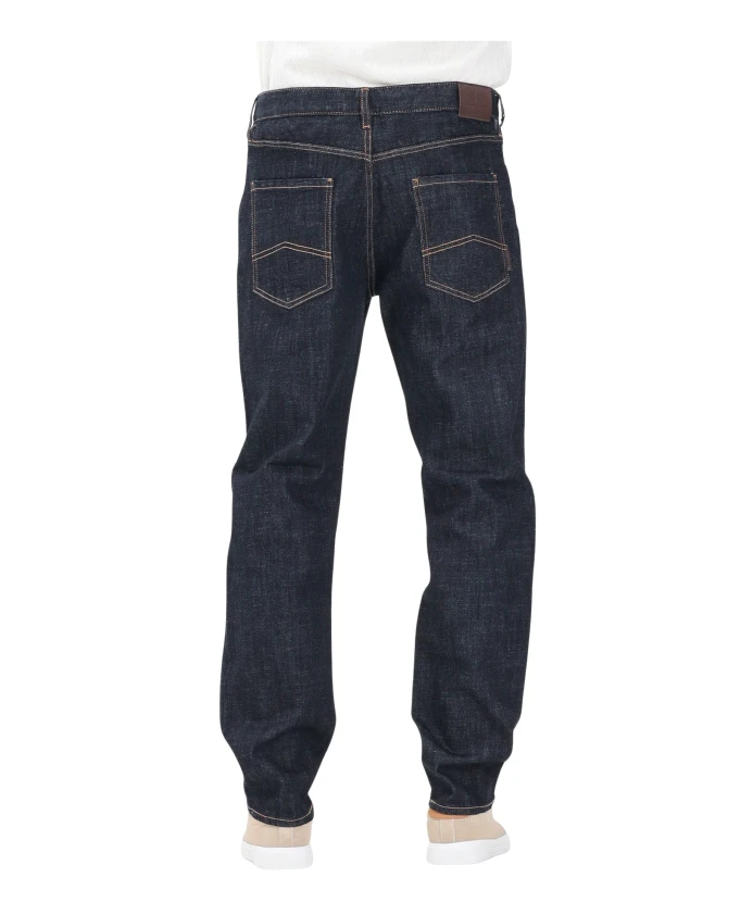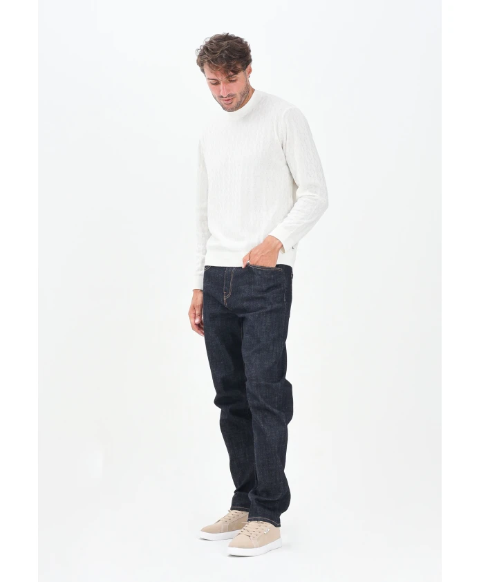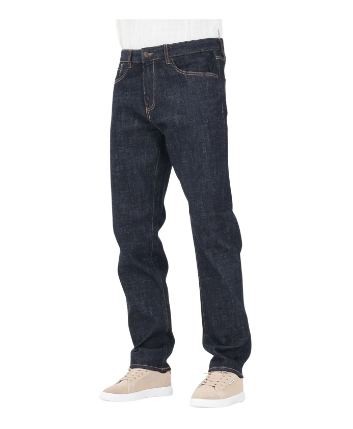 Мужские прямые джинсы ARMANI EXCHANGE из темно-синего денима. Прямой, слегка классический крой, идеально подходящий для комфорта и создания аккуратного силуэта. Модель имеет пять карманов, застегивается на пуговицу и молнию, а контрастная коричневая строчка придает ей аутентичный и традиционный вид. Два накладных кармана сзади с аккуратной строчкой дополняют минималистичный и универсальный дизайн. Идеально подходят для повседневных или элегантных образов, эти джинсы легко сочетаются с рубашками, свитерами или футболками, создавая стильный и современный образ. Модель носит размер 34 (+14) и имеет рост 190 см. Рекомендуется стирка и глажка при средней температуре. Сезон осень/зима. Мужские джинсы прямого кроя для осени/зимы XM000069AF18822MB001.