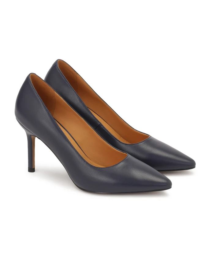 Темно-синие туфли-лодочки из высококачественной натуральной кожи - это классика элегантности, сочетающая в себе изысканный стиль и комфорт. Тонкий высокий каблук придает силуэту легкость и визуально удлиняет ноги, обеспечивая при этом комфортное ношение. Заостренный носок подчеркивает элегантные линии обуви, добавляя образу сдержанной динамики и классической элегантности. Глубокий синий цвет туфель универсален и предлагает стильную альтернативу черному, идеально подходящую к различным стилям - от делового до вечернего. Подкладка выполнена из мягкой полуанилиновой овчины, известной своим превосходным влагопоглощением и исключительным комфортом. Подошва изготовлена из туниковой кожи, отличающейся прочностью и эстетической привлекательностью.