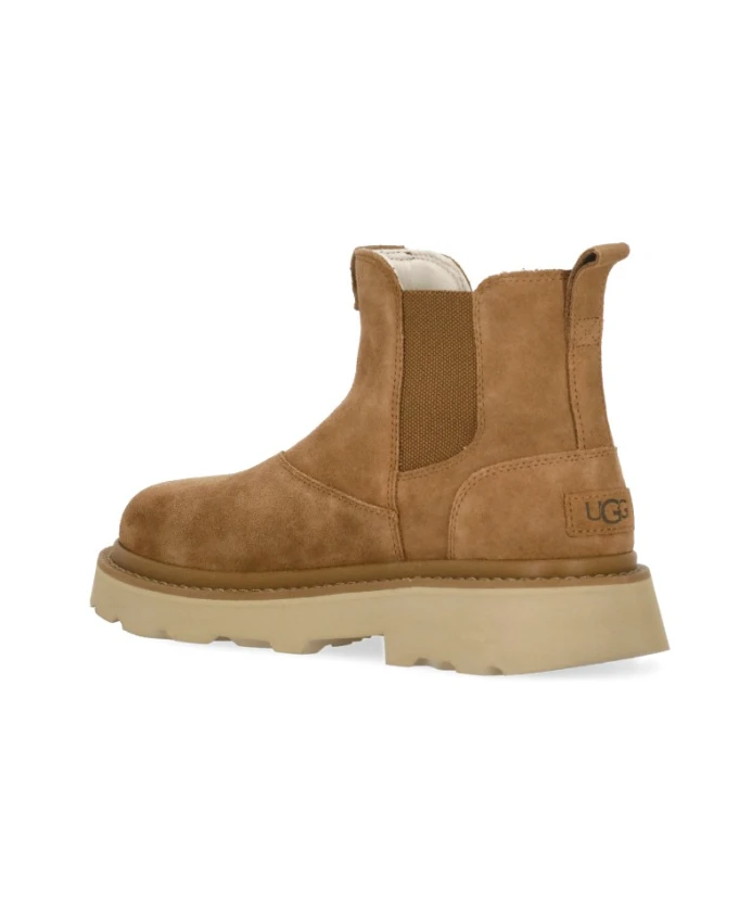 Ботинки UGG Chelsea Lug Boot сочетают в себе классический силуэт челси с рифленой подошвой и утепленной подкладкой UGGplush для холодной погоды. Дизайн ориентирован на удобство надевания и снимания, а также на надежное сцепление с поверхностью для повседневной зимней носки. Ключевые особенности: Коричневый | Замша | Утепленная стелька UGGplush (шерсть и лиоцелл) | Прочная резиновая подошва для сцепления | Эластичные боковые вставки для удобного надевания | Логотип в тон на задней части (пятке) | Петля на пятке | Силуэт челси на щиколотке | Круглый носок | Рифленая подошва | Размер и посадка: Соответствует стандартному размеру. Состав и уход: Верх из замши | Текстильная подкладка (стелька UGGplush из шерсти и лиоцелла) | Резиновая подошва