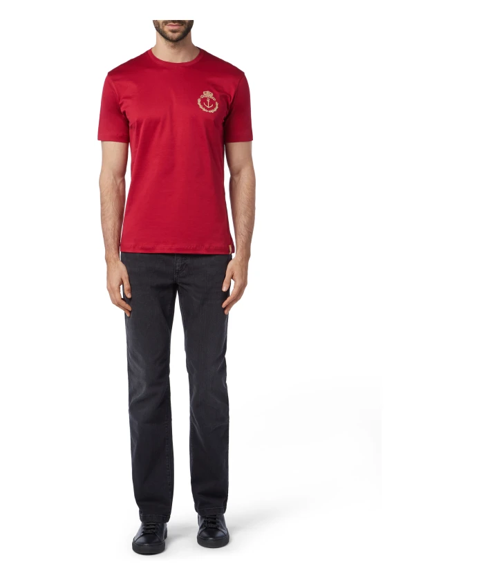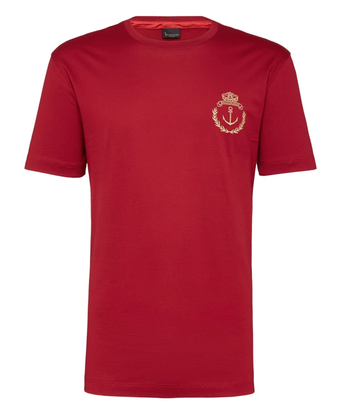 Футболка Billionaire с круглым вырезом изготовлена из хлопкового трикотажа и украшена вышитой эмблемой в морском стиле на левой стороне груди. Она создана для повседневного образа в расслабленном стиле с ненавязчивыми деталями фирменного стиля. Ключевые особенности: Красный | Хлопок | Петля для подвешивания на кокетке | Разрезы на спине для свободы движений | Круглый вырез | Вышитая морская эмблема на левой стороне груди | Меньшая эмблема, вышитая на петле для подвешивания на кокетке | Ребристый вырез | Два разреза на спине | Двойная строчка на манжетах и подоле | Состав и уход: 100% хлопок | Машинная стирка в холодной воде, не отбеливать, сушить в сушилке при низкой температуре, при необходимости гладить утюгом при низкой температуре.